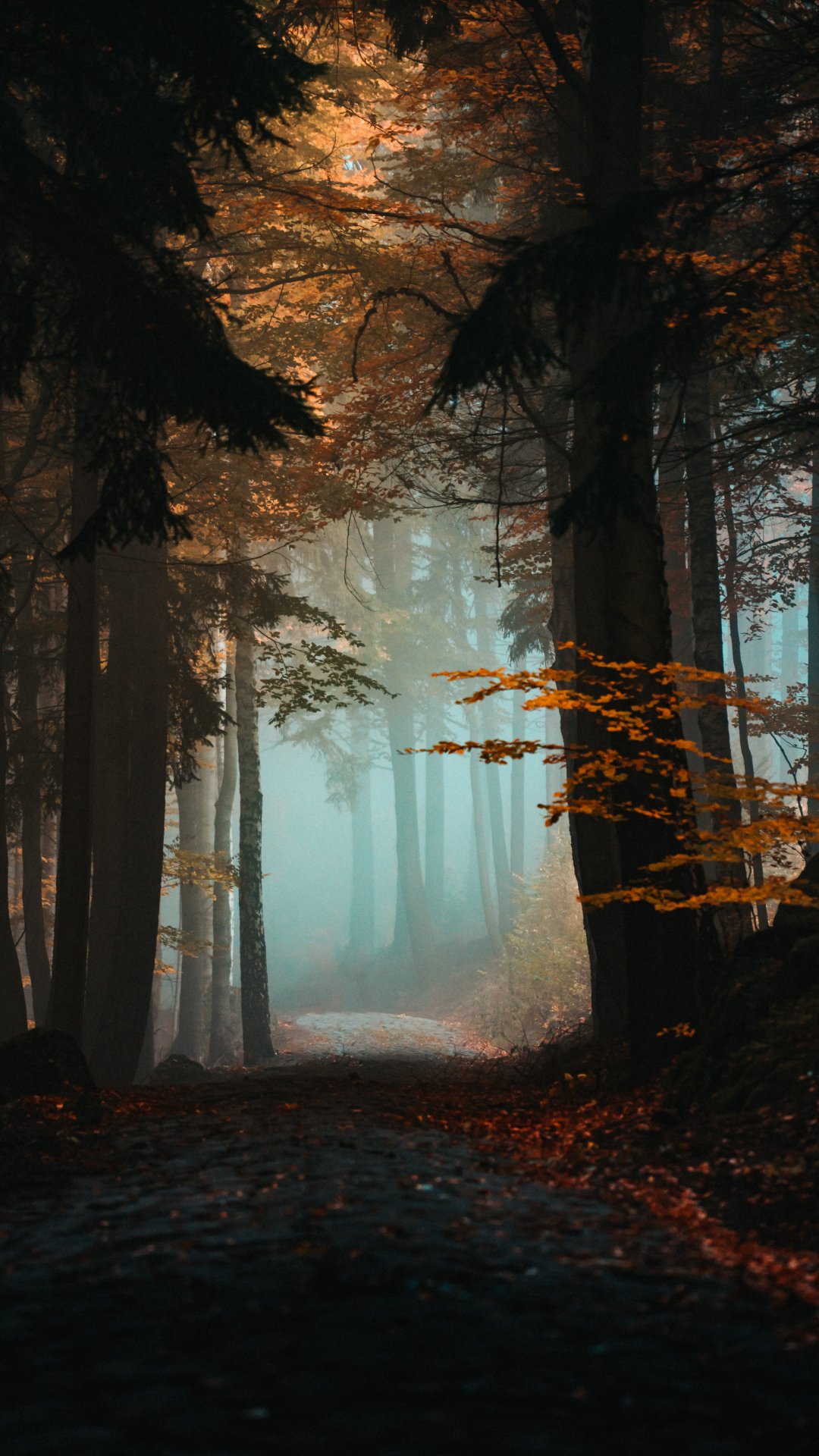 Wallpaper: forest, path, fog - 1080x1920