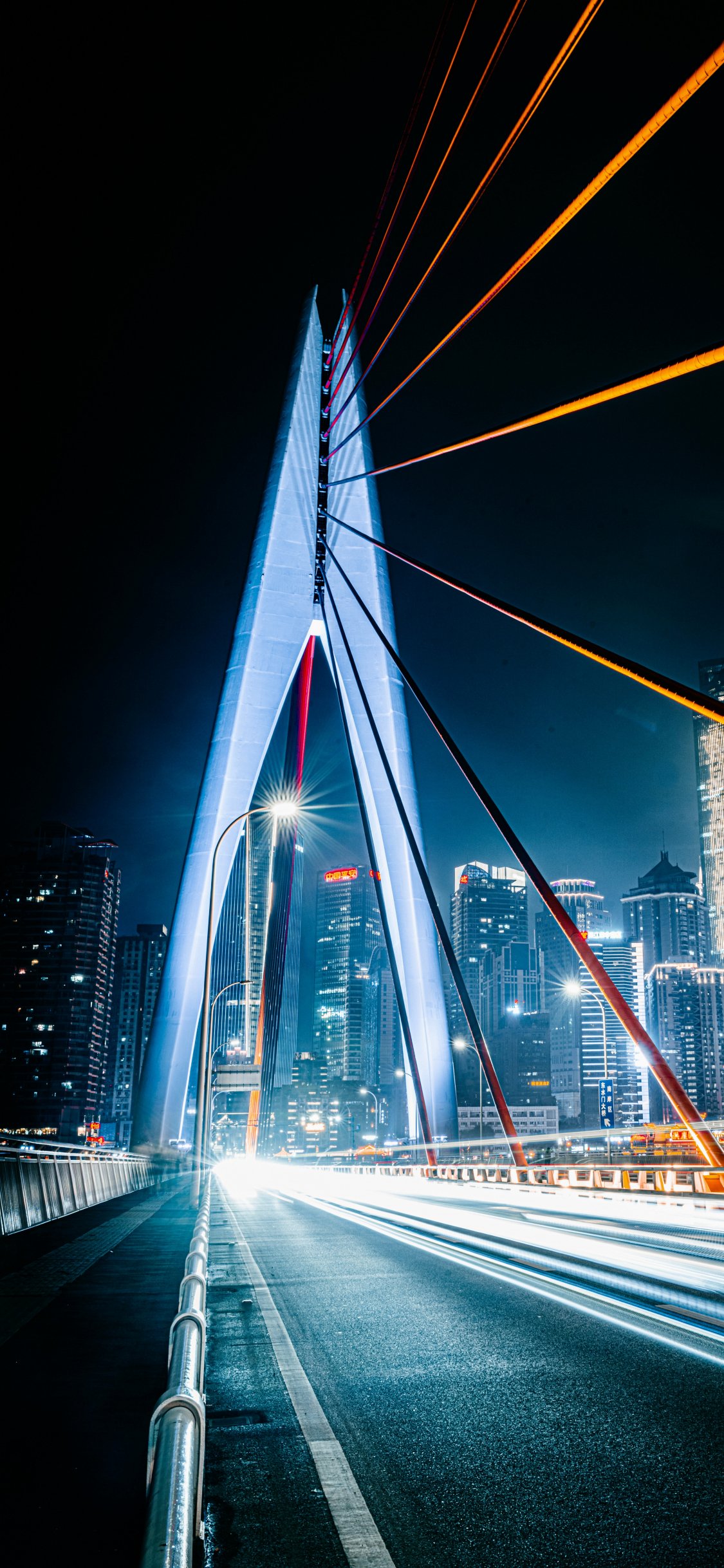 Wallpaper: bridge, road, night city - 1125x2436