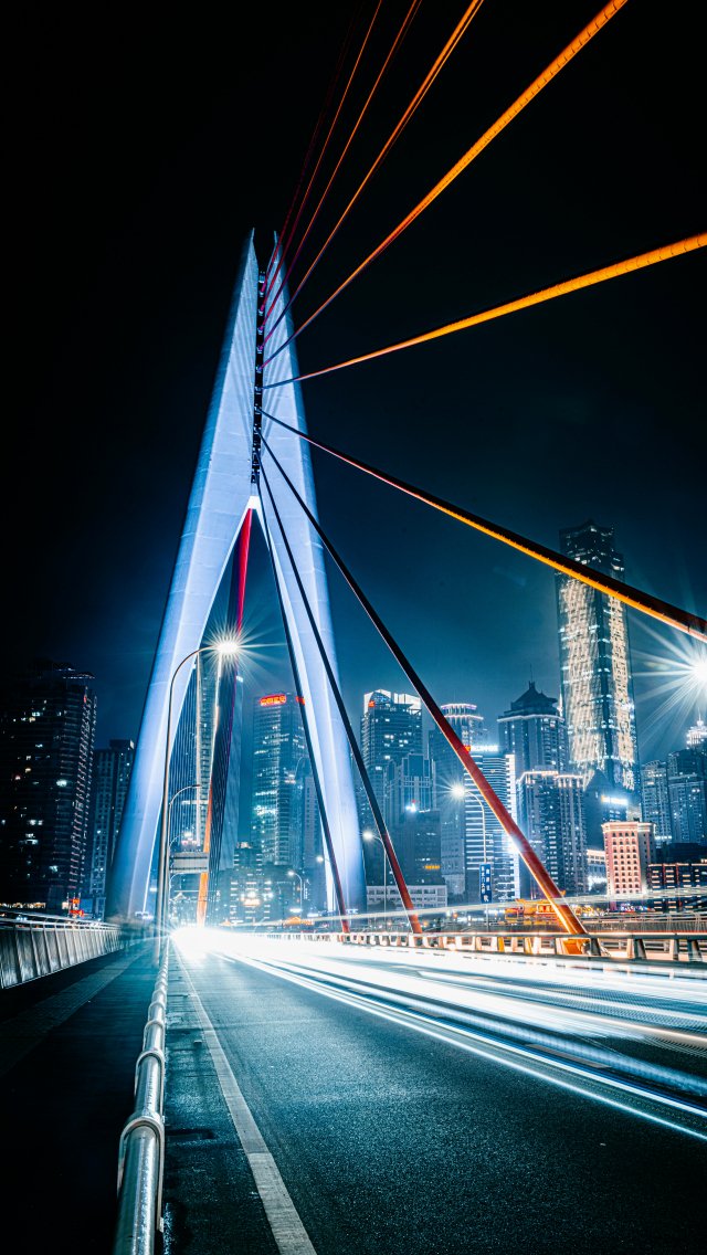 Wallpaper: bridge, road, night city - 640x1136