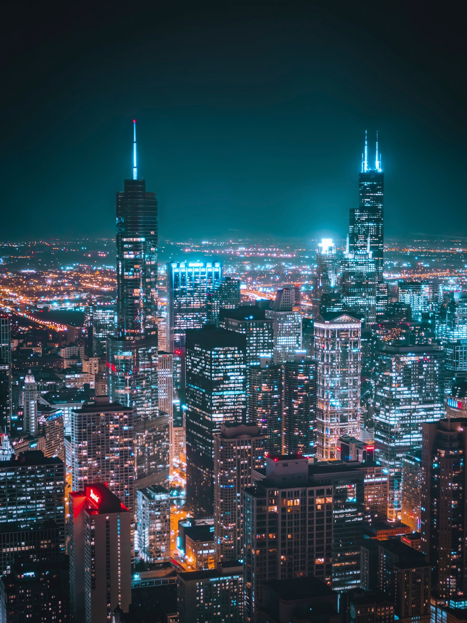 Wallpaper: Chicago, USA, night city - 1620x2160