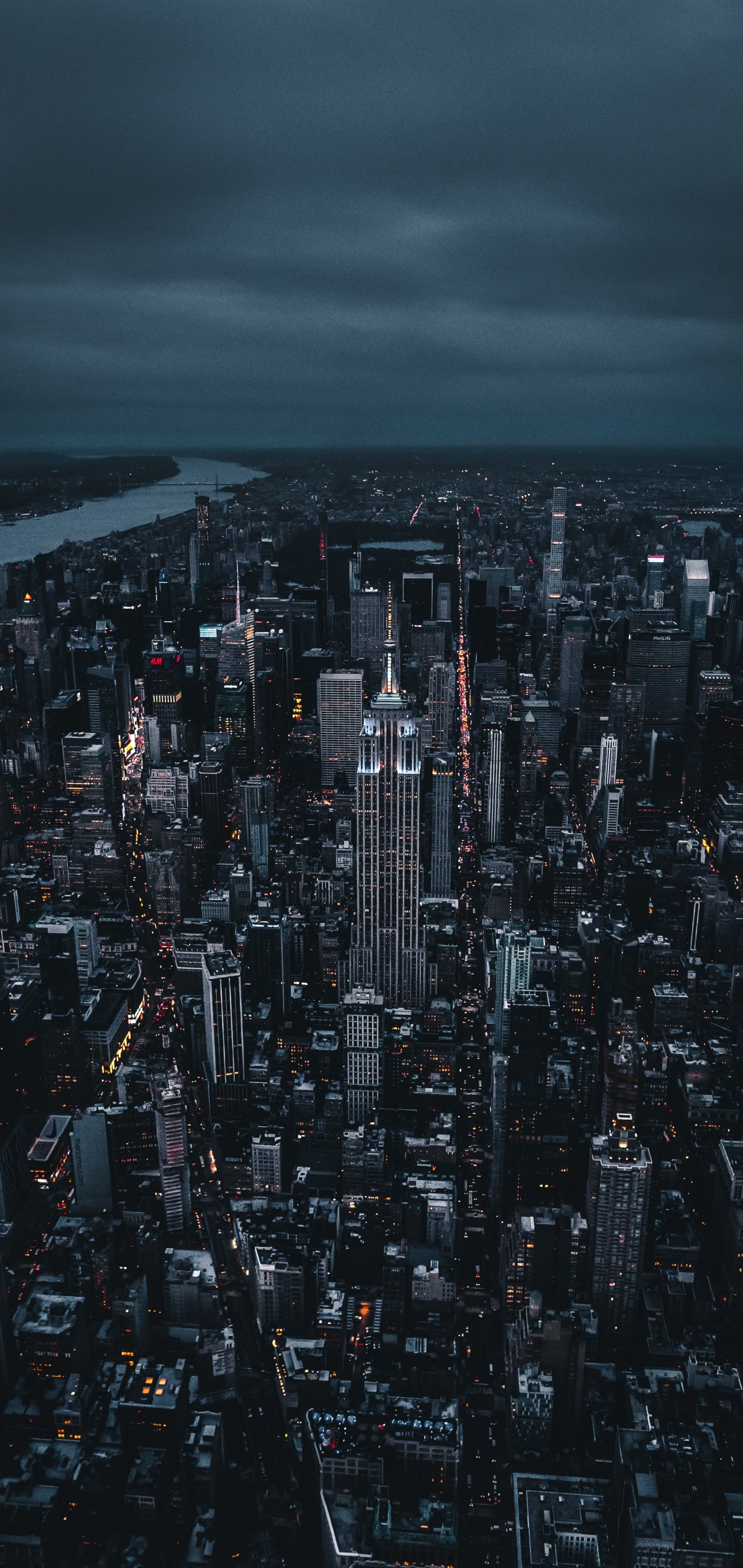 Wallpaper: New York, bird's eye view, night city - 1440x3040