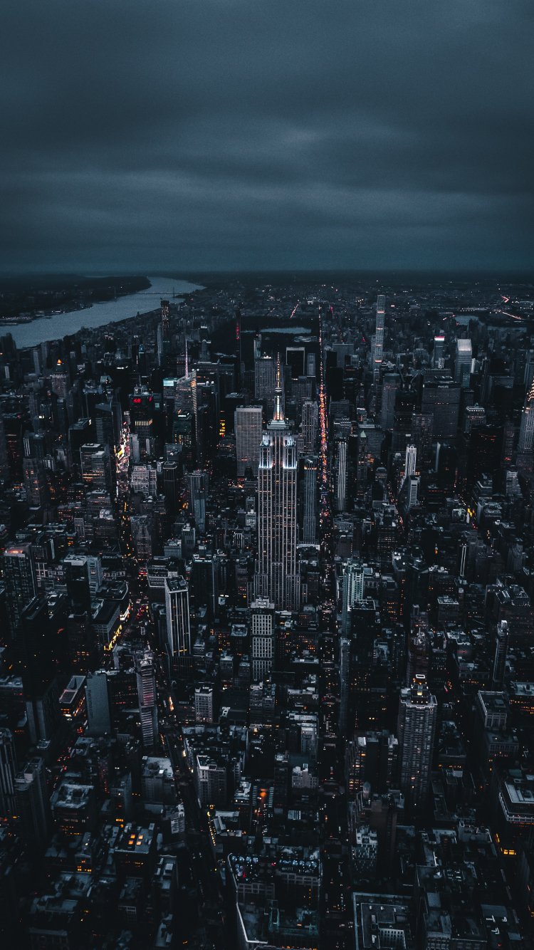 Wallpaper: New York, bird's eye view, night city - 750x1334