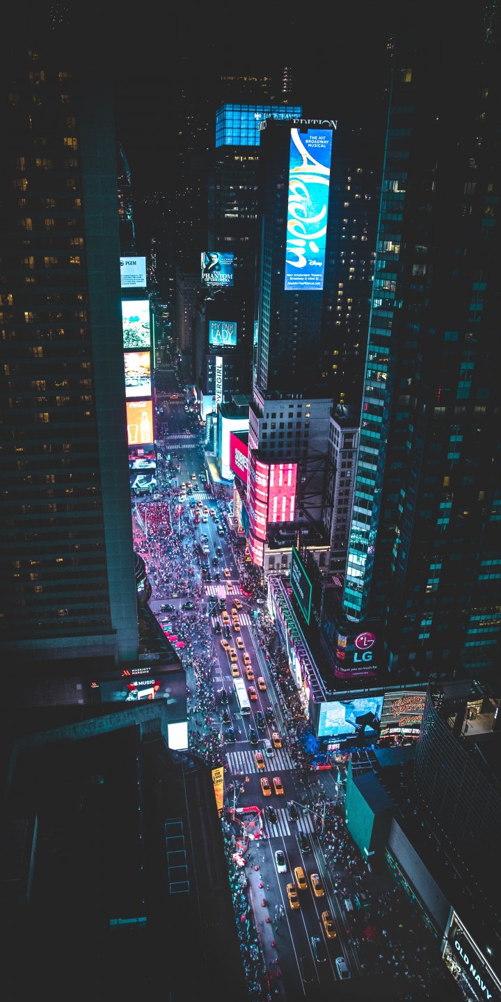 Wallpaper: Times Square, night city, New York - 720x1440