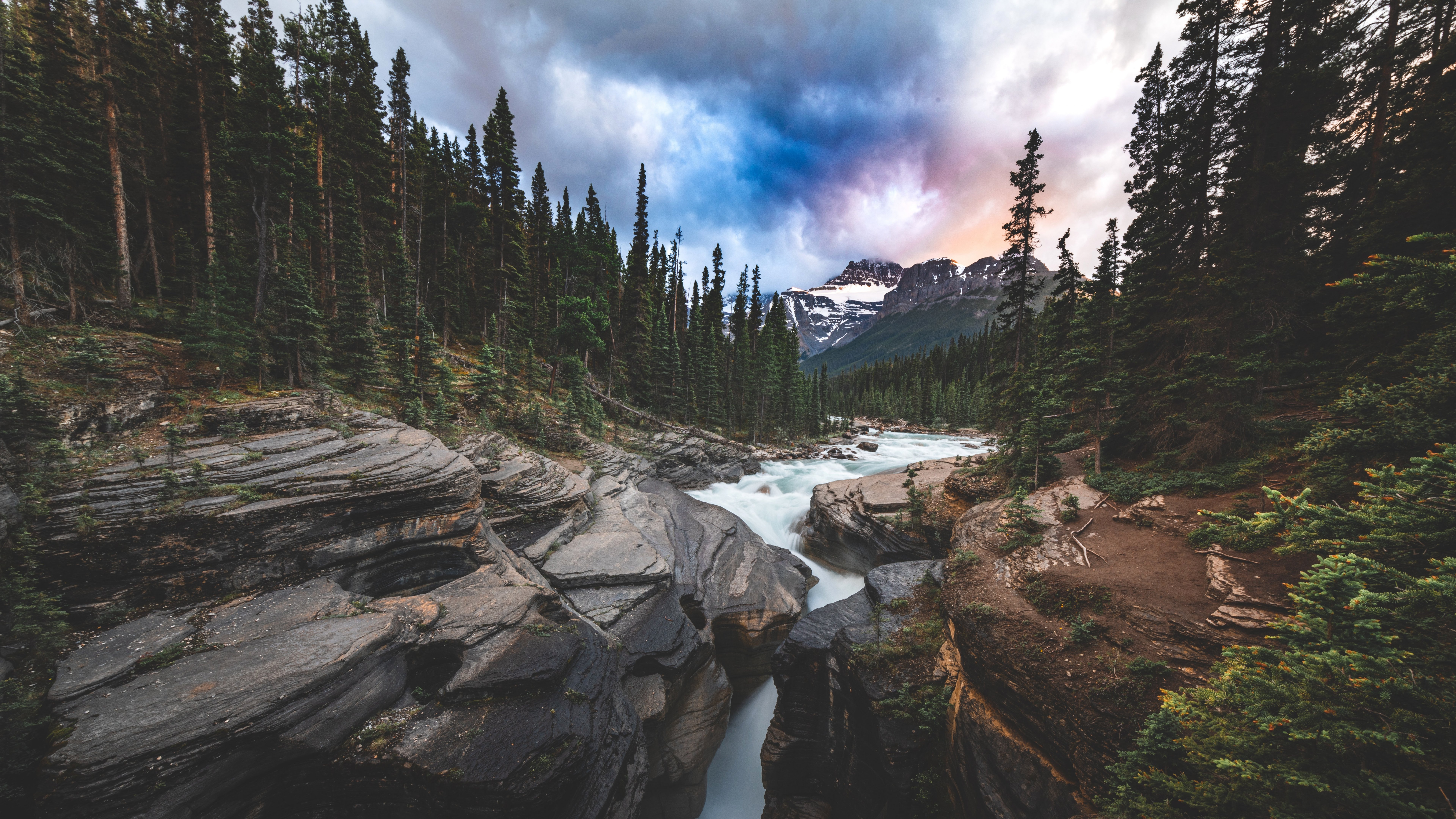 Wallpaper: landscape, river, forest - 7680x4320