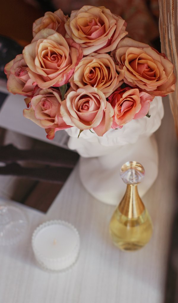 Wallpaper: pink roses, flower bouquet, aesthetics - 600x1024