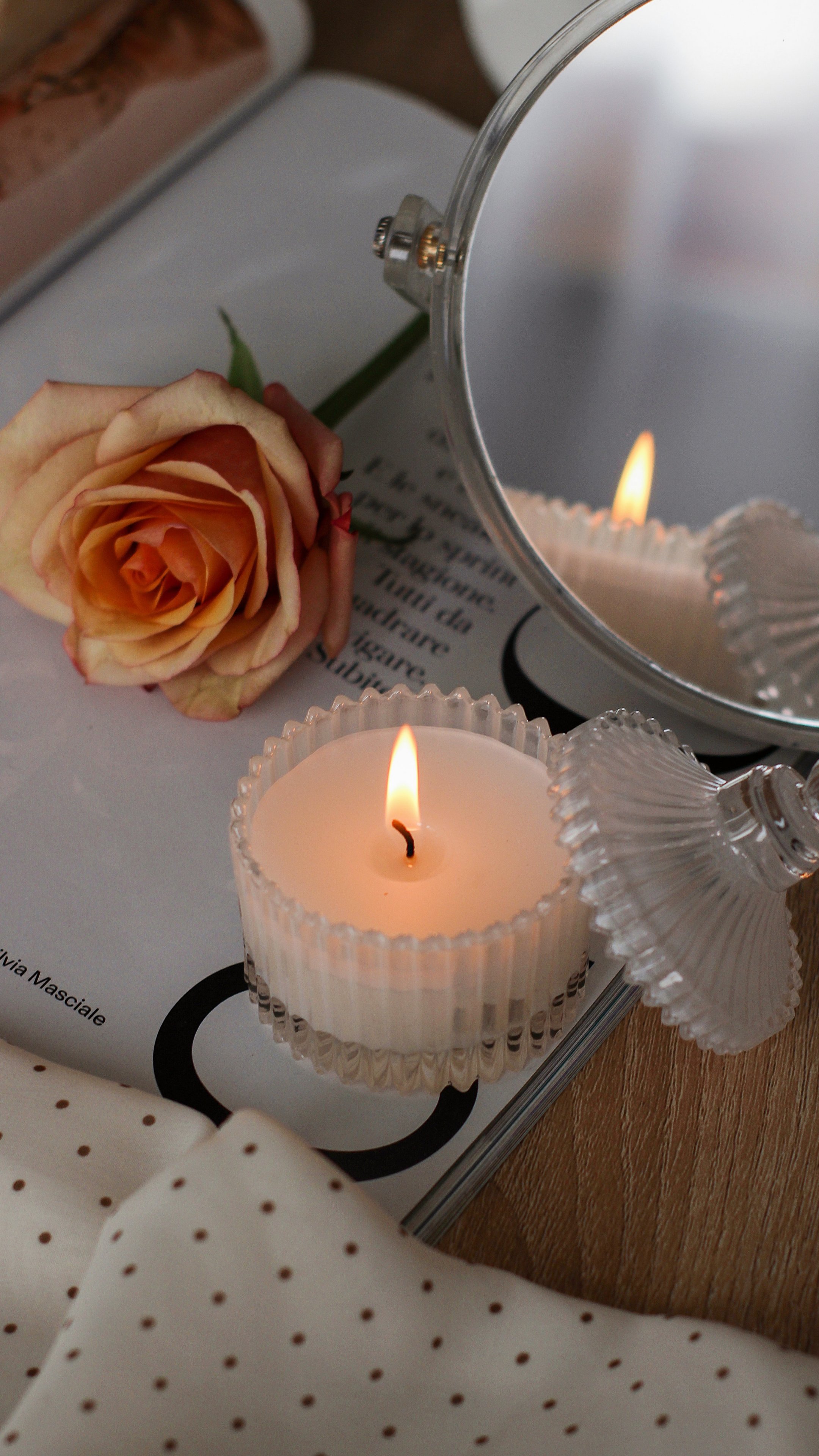 Wallpaper: pink rose, candle, aesthetics - 2160x3840