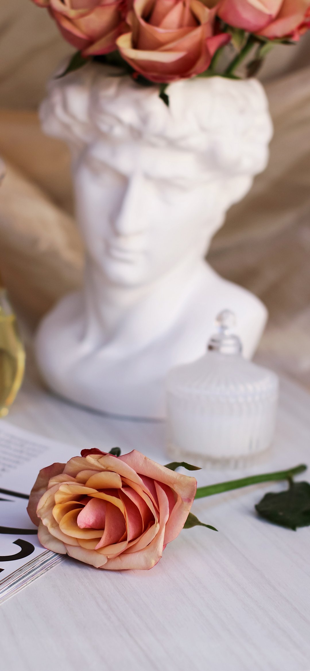 Wallpaper: pink rose, David, aesthetics - 1080x2340