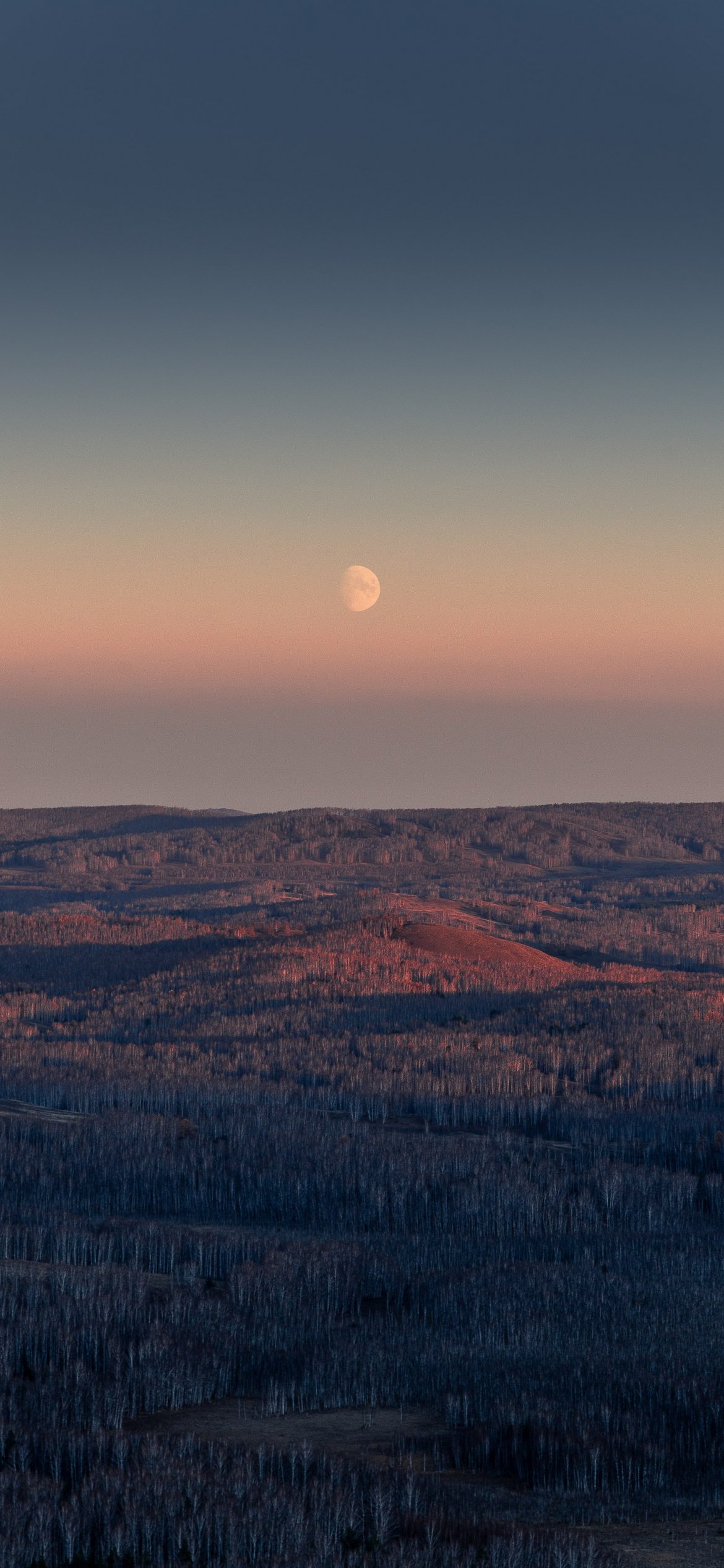 Wallpaper: landscape, sunrise, moon - 1170x2532
