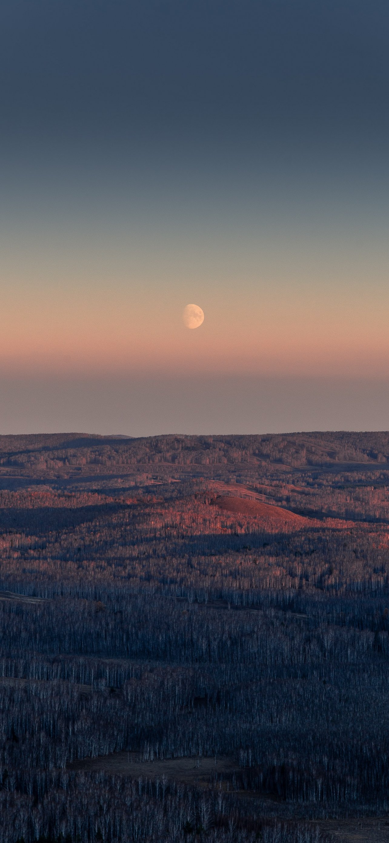 Wallpaper: landscape, sunrise, moon - 1284x2778
