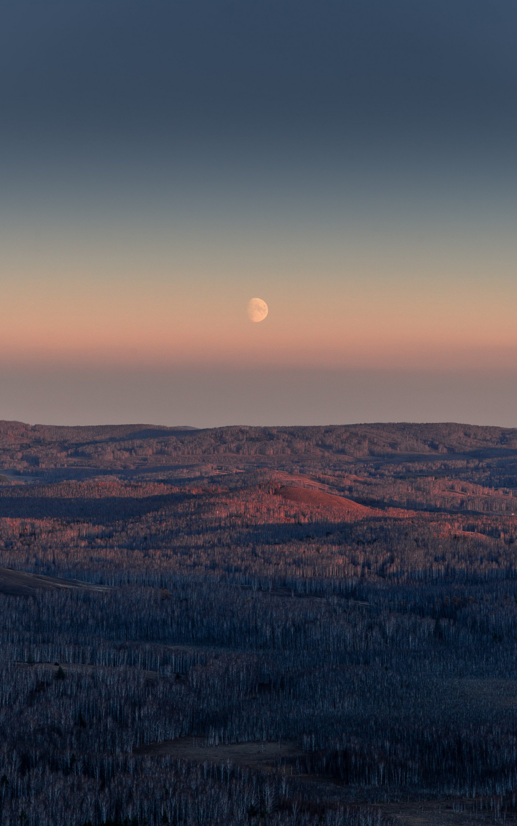 Wallpaper: landscape, sunrise, moon - 1752x2800