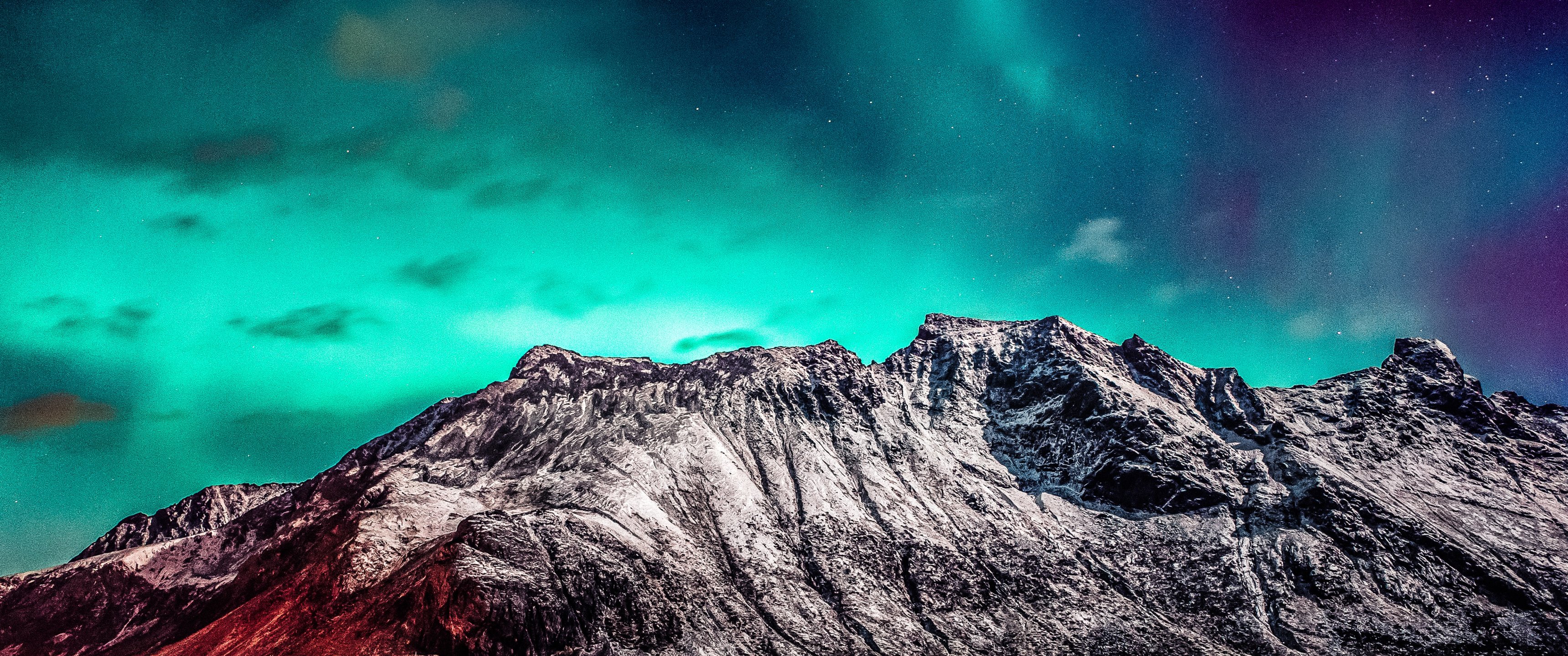 Wallpaper: northern lights, mountain, landscape - 3440x1440