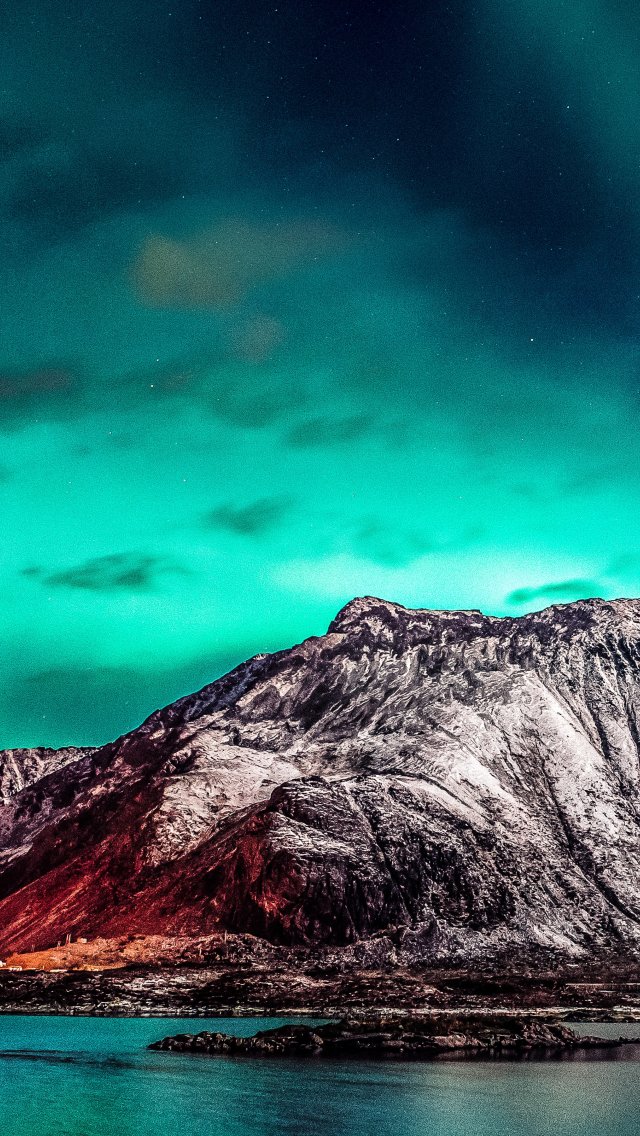 Wallpaper: northern lights, mountain, landscape - 640x1136