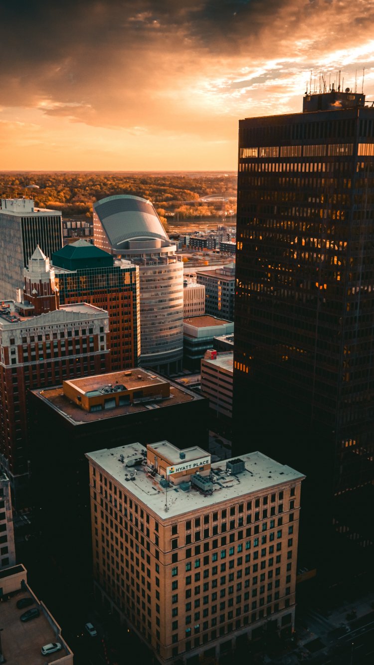 Wallpaper: Des Moines, sunset, bird's eye view - 750x1334
