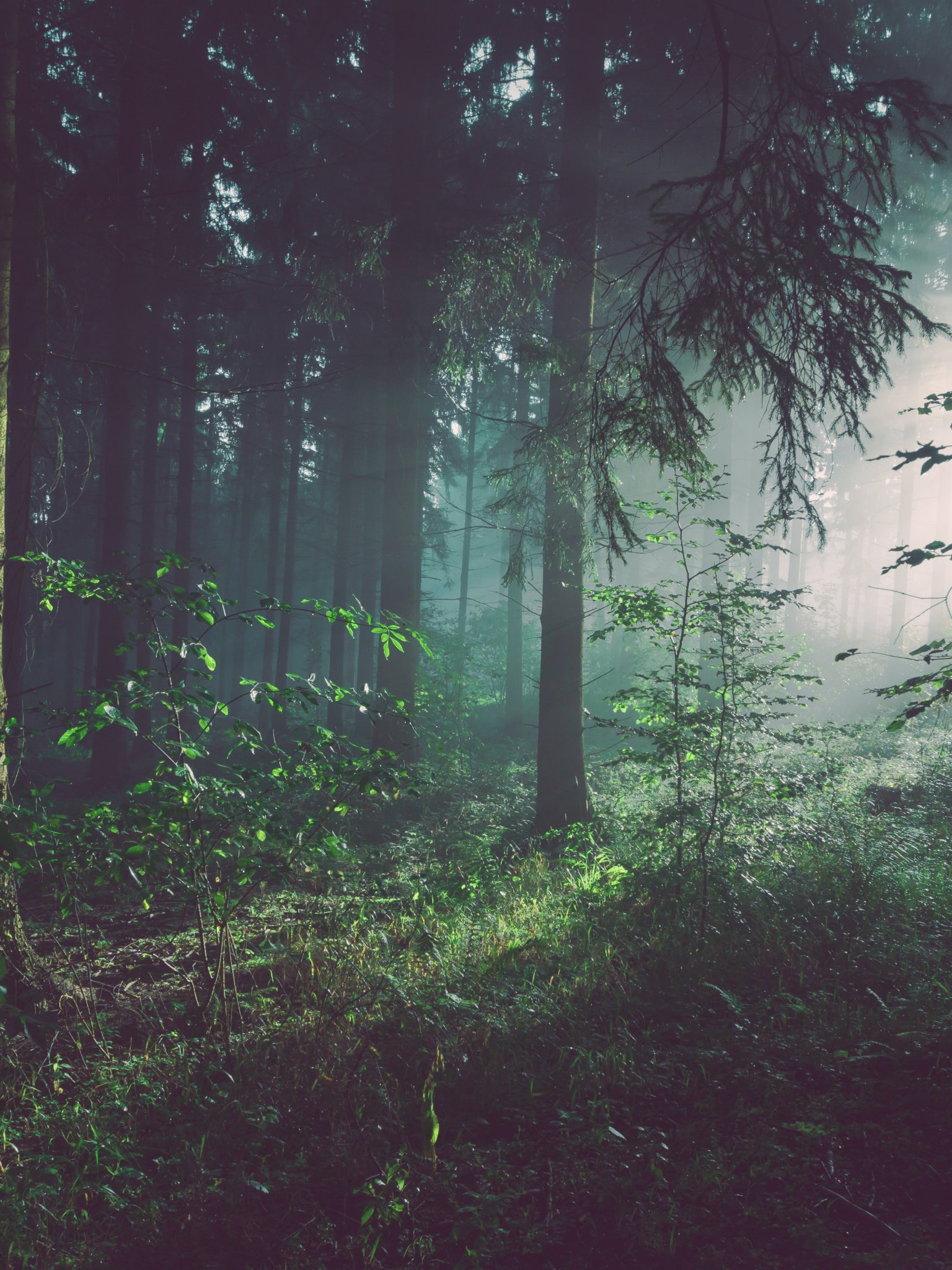Wallpaper: forest, fog, green - 1536x2048