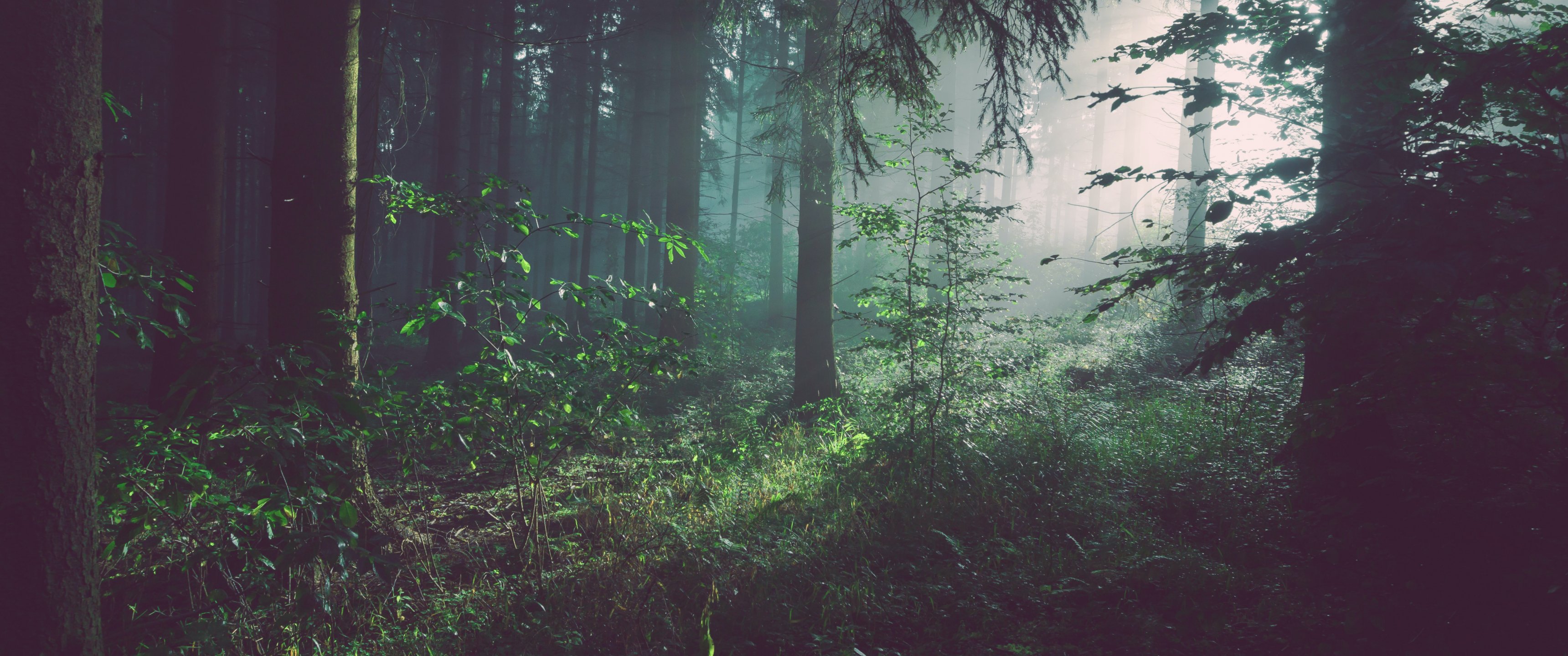 Wallpaper: forest, fog, green - 3440x1440