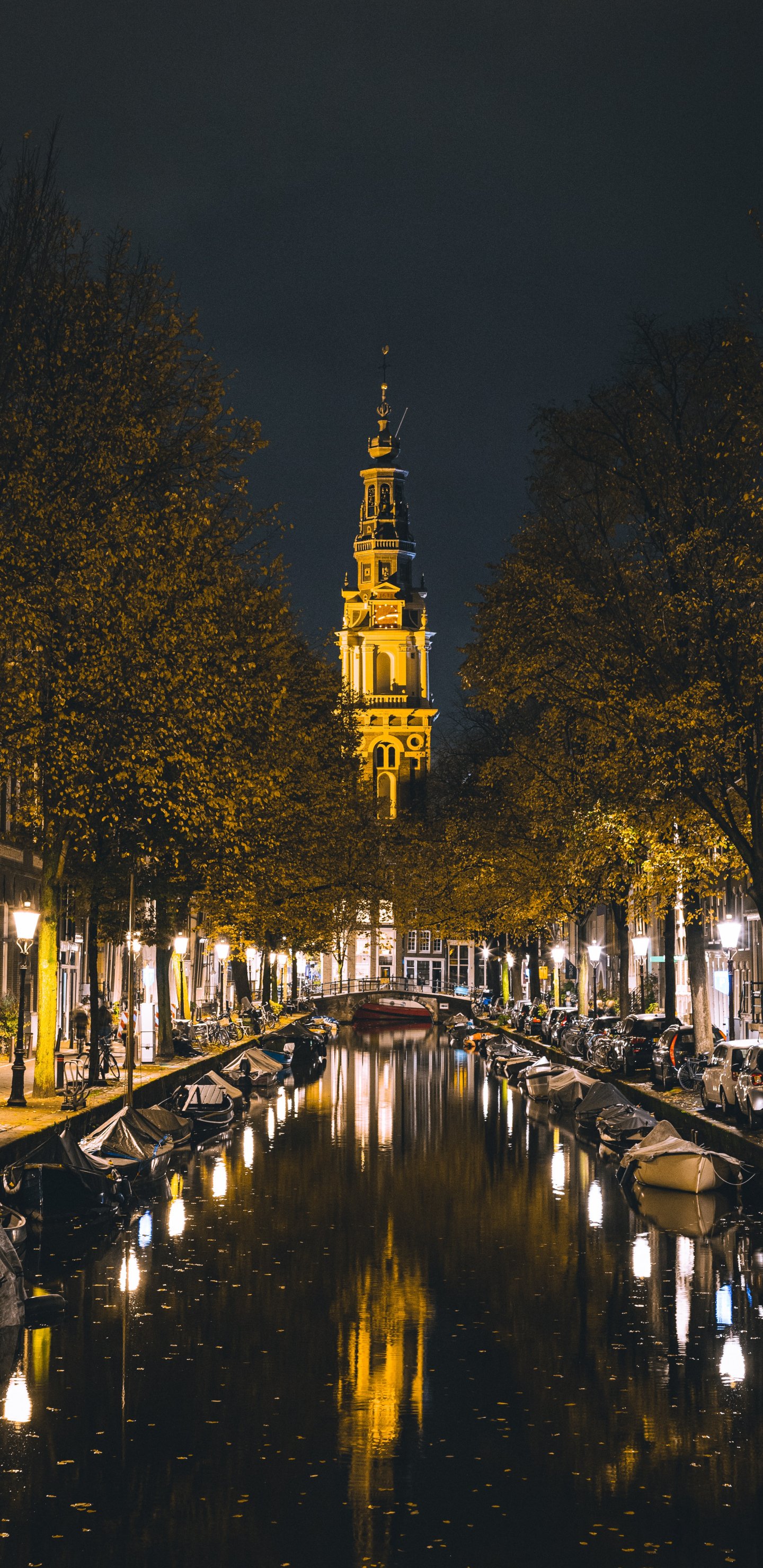 Wallpaper: Amsterdam, channel, night city - 1440x2960