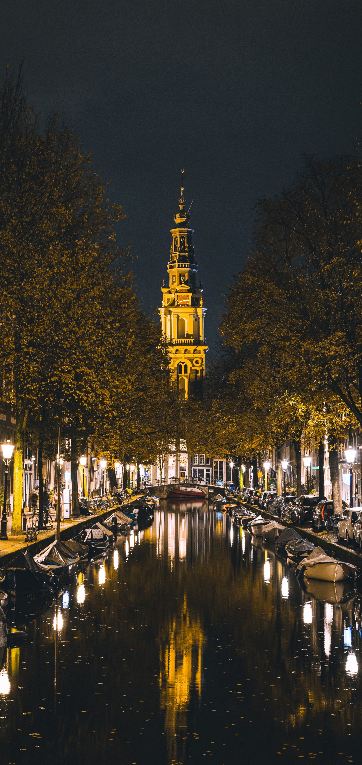 Wallpaper: Amsterdam, channel, night city - 1440x3040