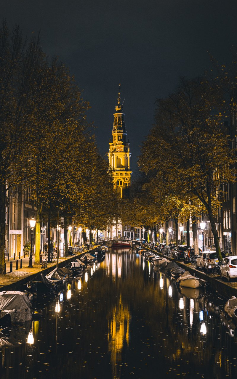 Wallpaper: Amsterdam, channel, night city - 800x1280