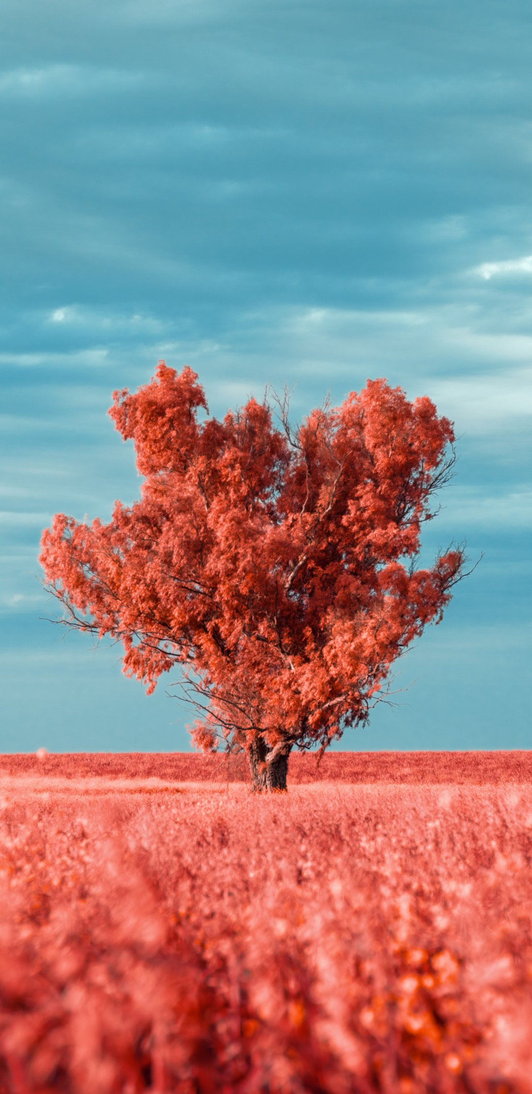 Wallpaper: tree, landscape, red - 1080x2220