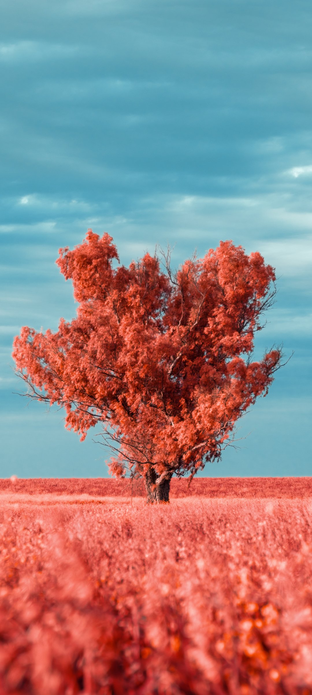 Wallpaper: tree, landscape, red - 1080x2400