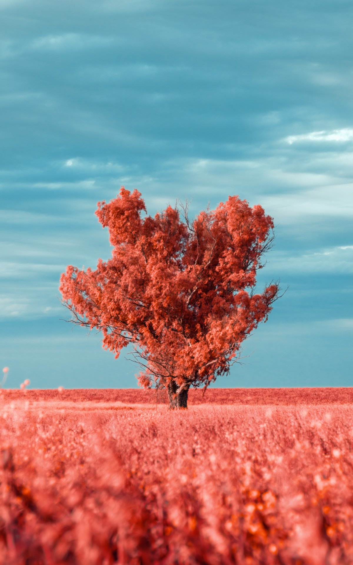 Wallpaper: tree, landscape, red - 1200x1920
