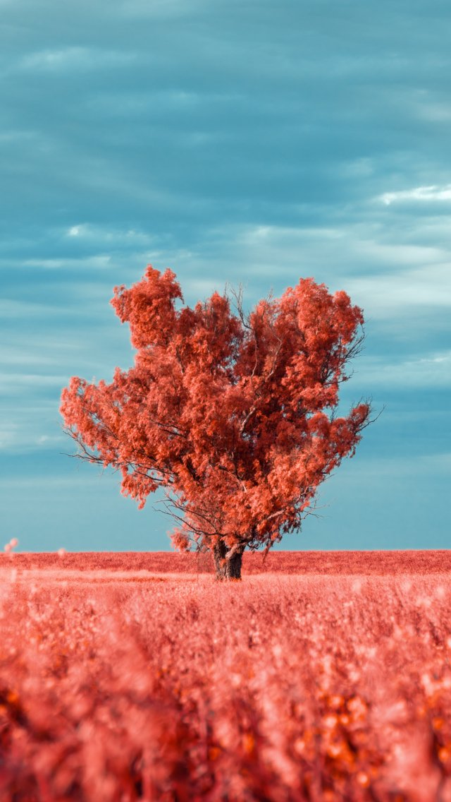 Wallpaper: tree, landscape, red - 640x1136