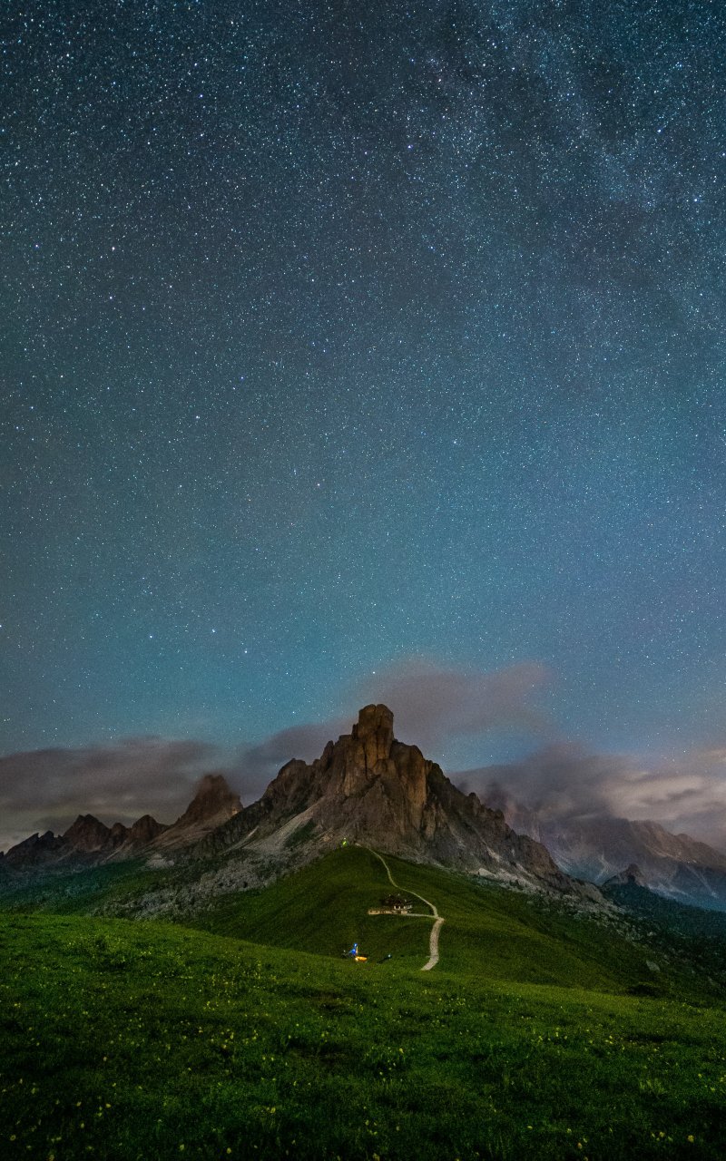 Wallpaper: starry sky, landscape, scale - 800x1280