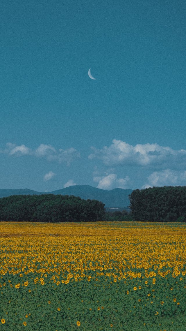 Wallpaper: landscape, blue sky, crescent - 640x1136