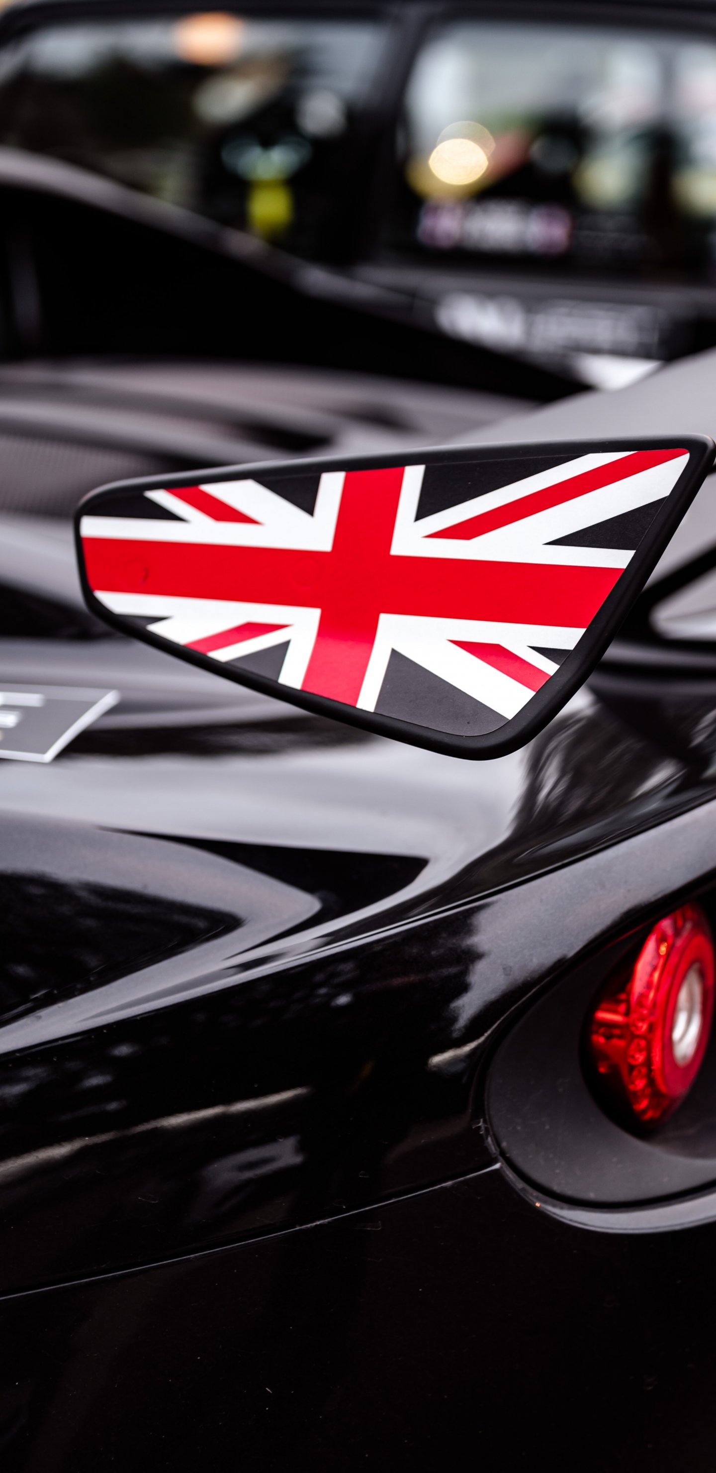Wallpaper: black, sports car, uk flag - 1440x2960