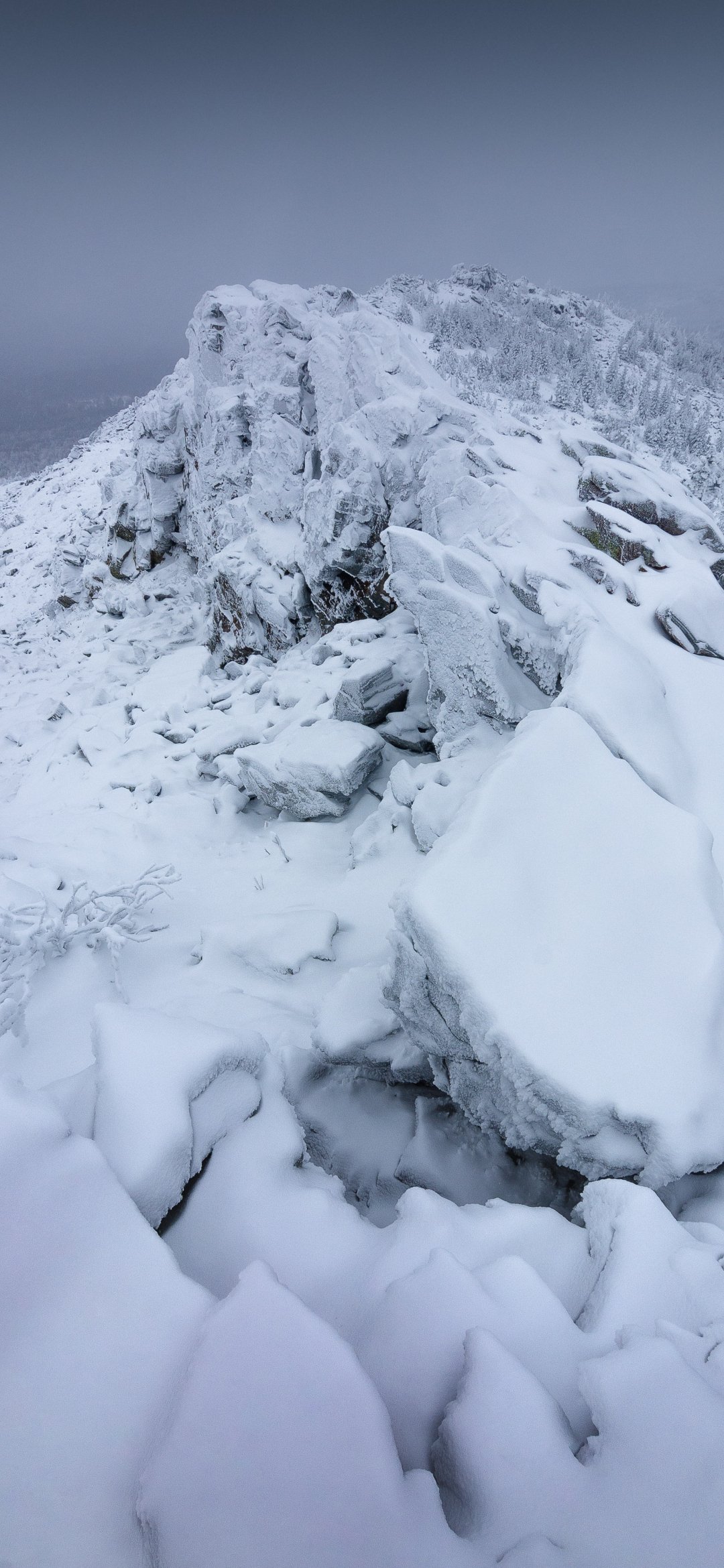 Wallpaper: mountain range, snow, winter - 1080x2340