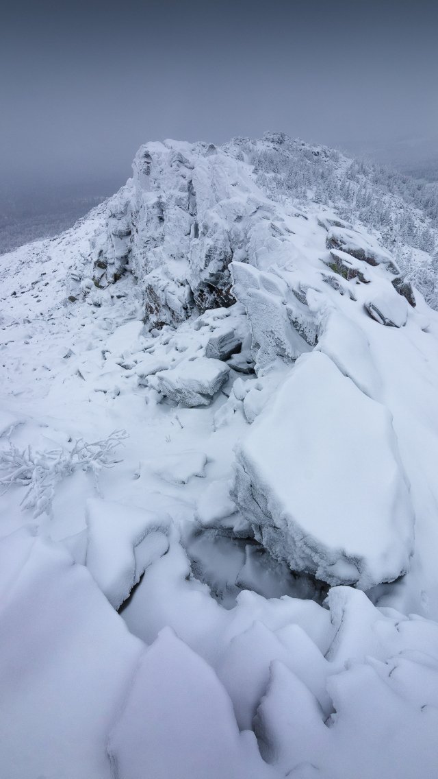 Wallpaper: mountain range, snow, winter - 640x1136