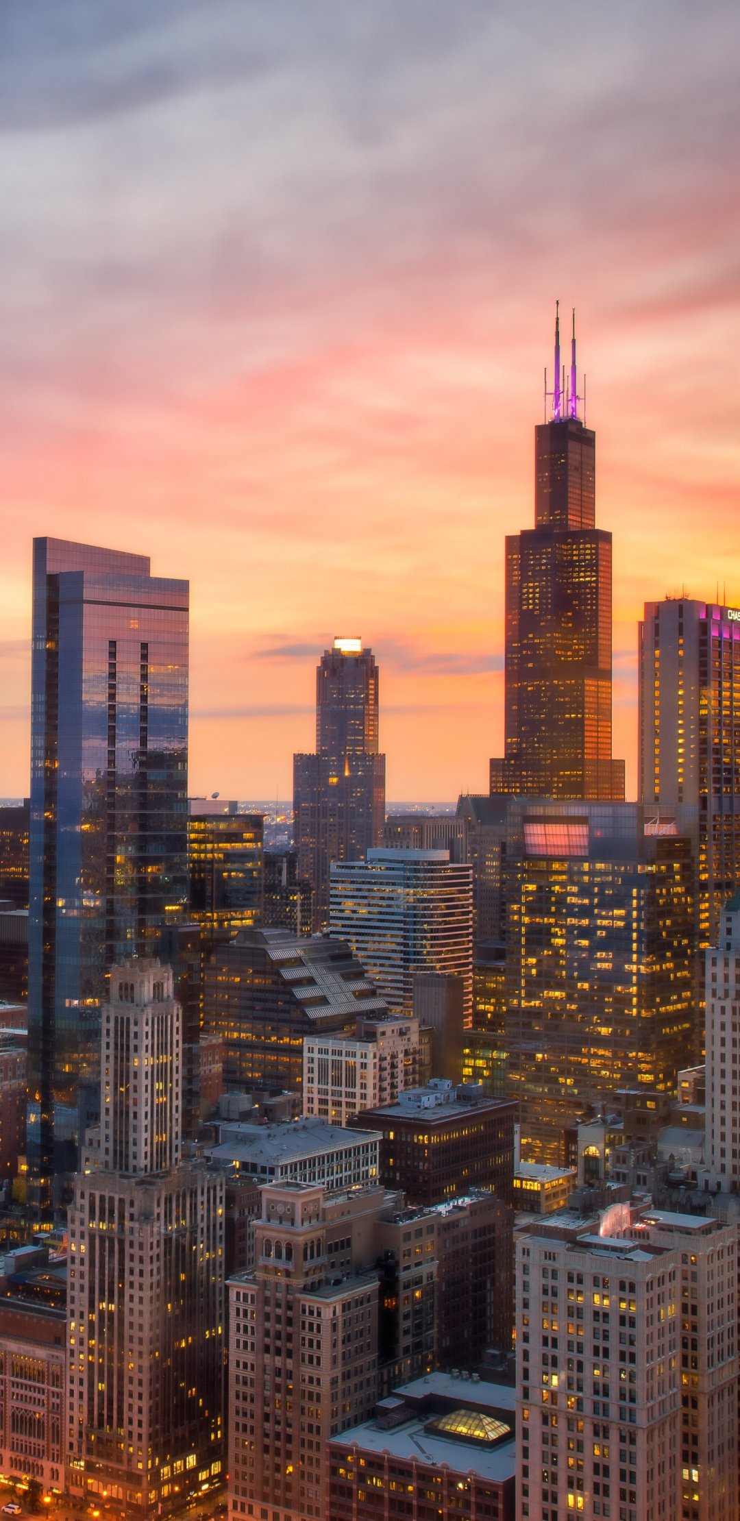 Wallpaper: Chicago, bird's eye view, sunset - 1080x2220