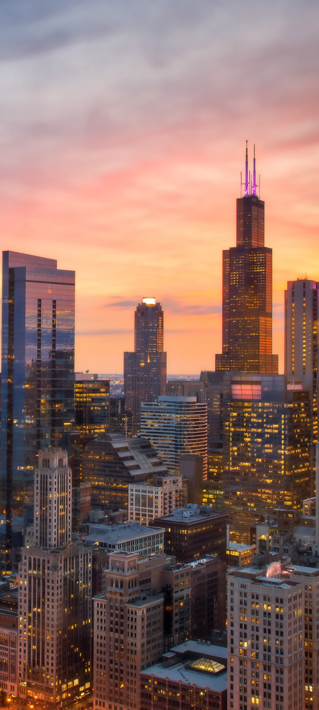 Wallpaper: Chicago, bird's eye view, sunset - 1080x2400