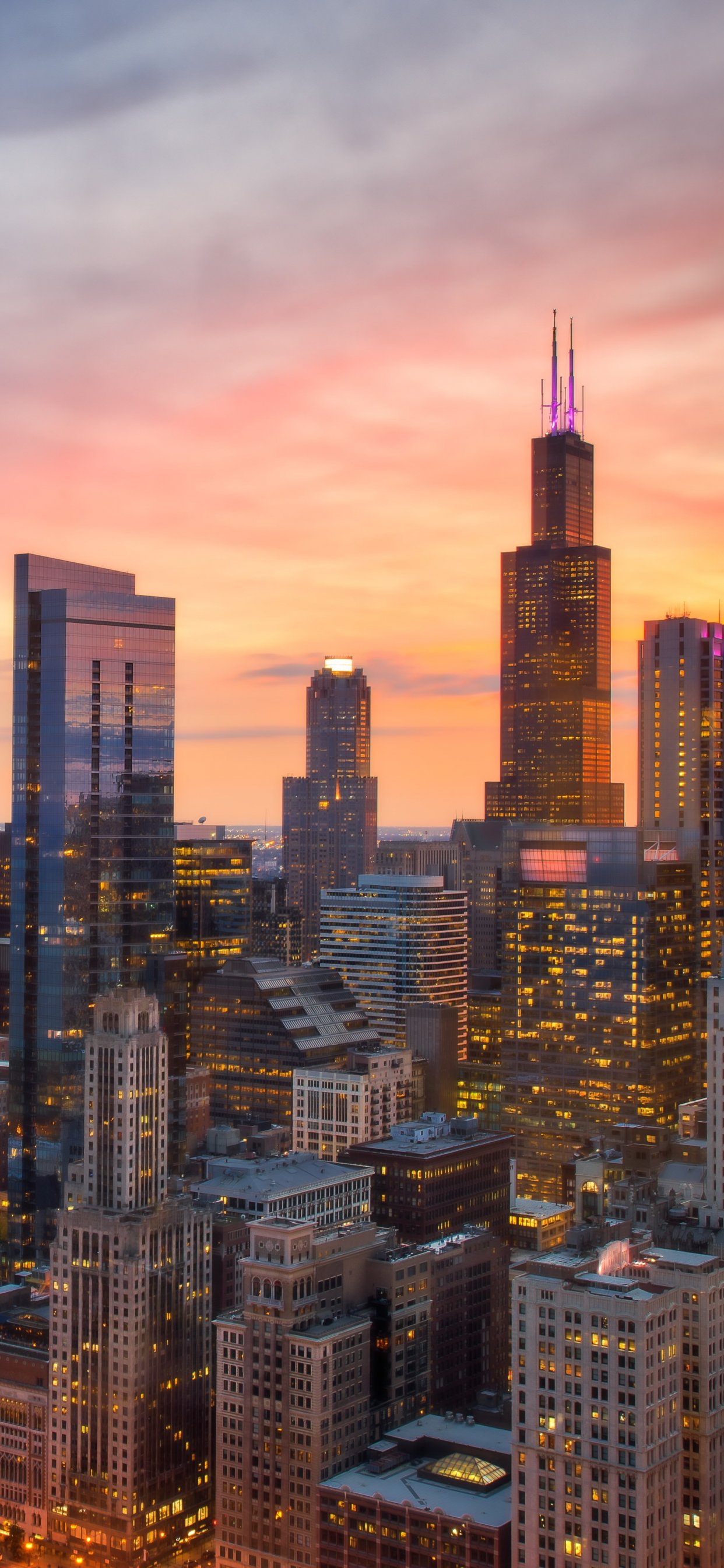 Wallpaper: Chicago, bird's eye view, sunset - 1242x2688