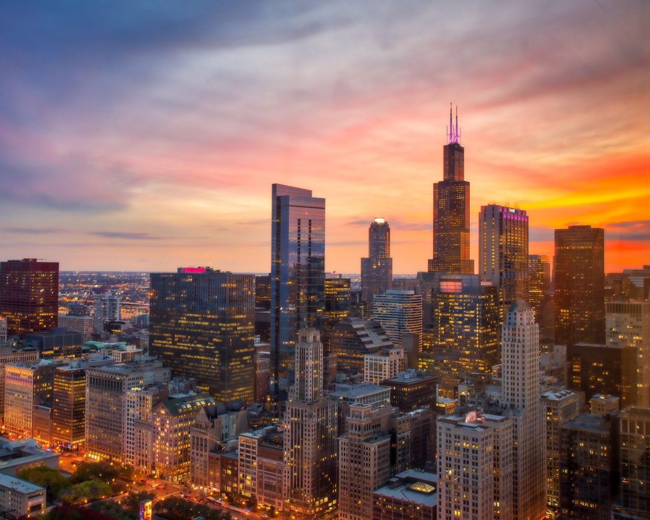 Wallpaper: Chicago, bird's eye view, sunset - 1280x1024