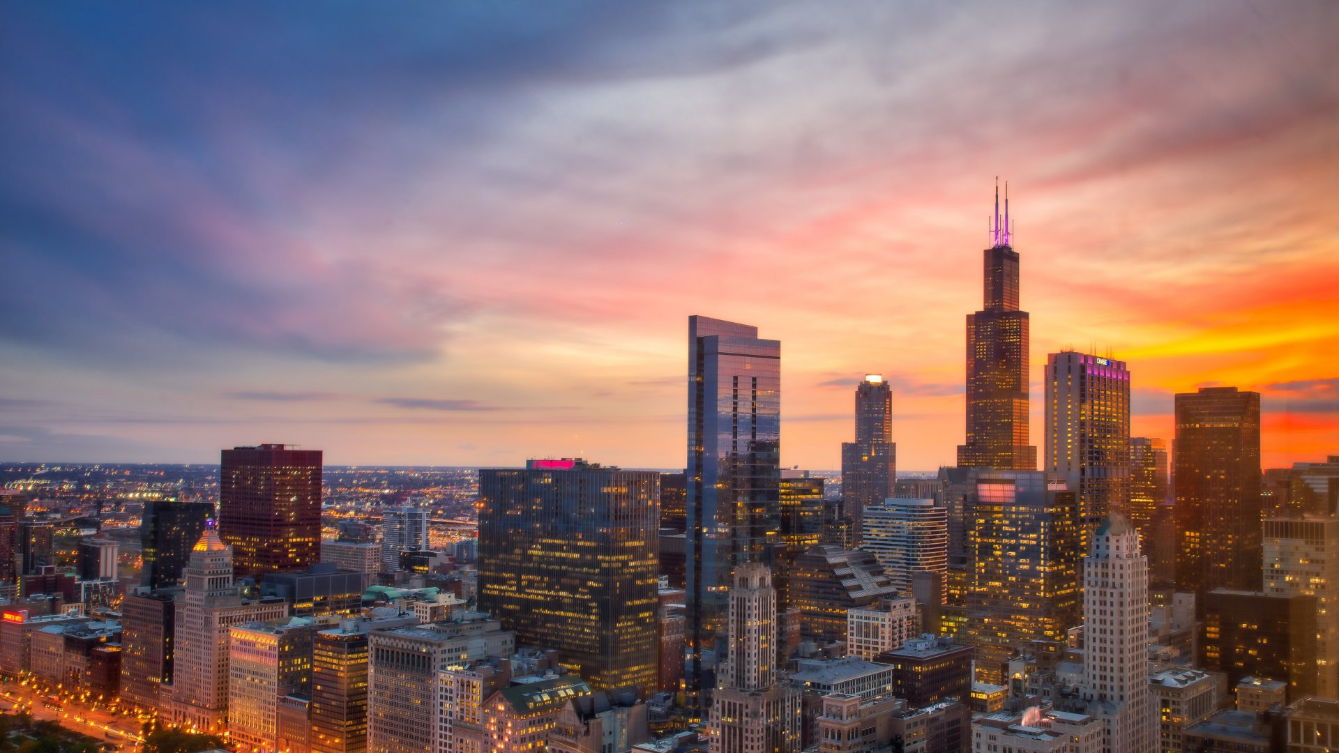 Wallpaper: Chicago, bird's eye view, sunset - 1920x1080