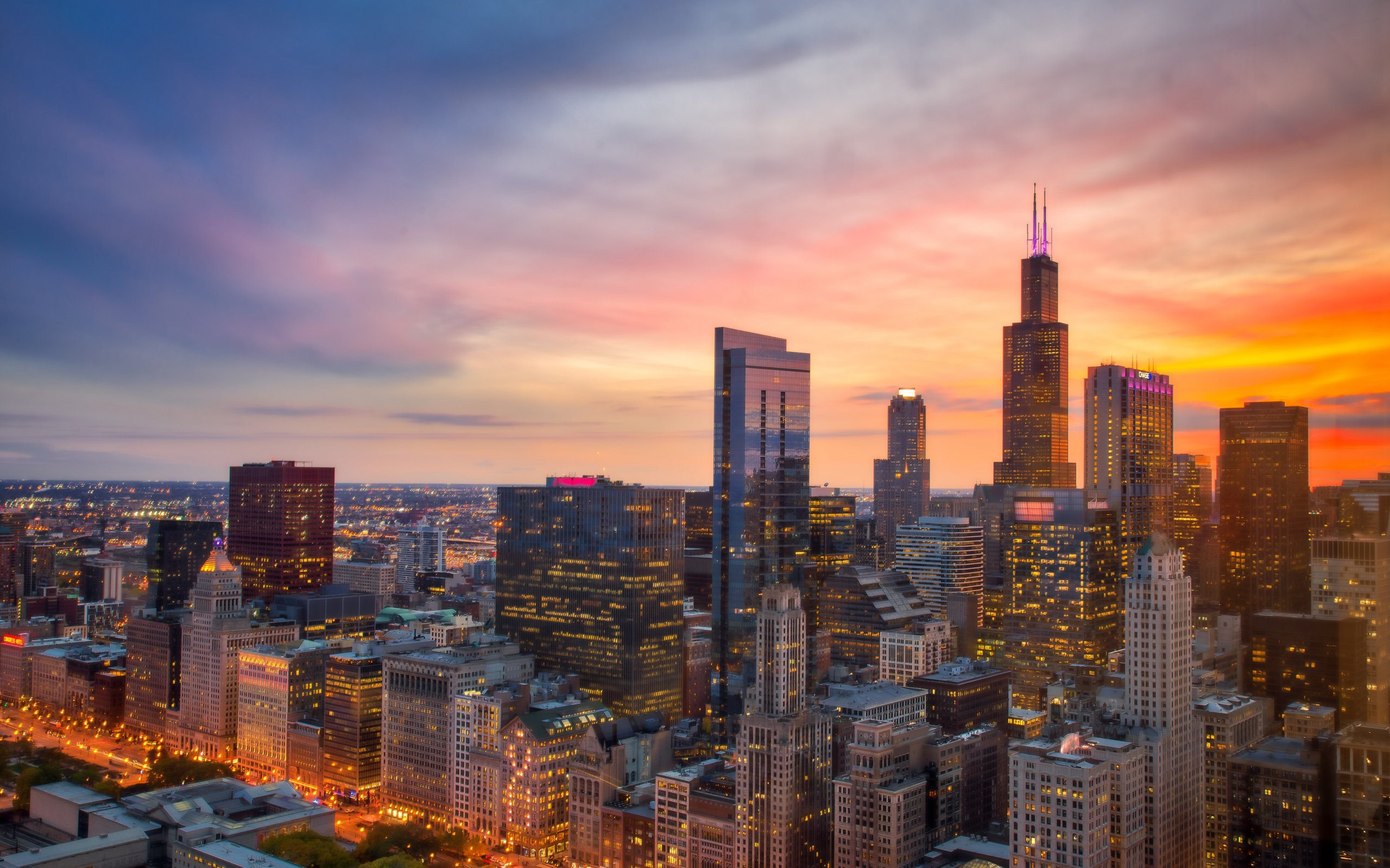 Wallpaper: Chicago, bird's eye view, sunset - 2560x1600
