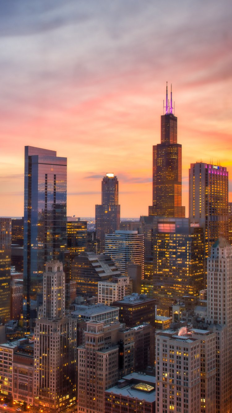 Wallpaper: Chicago, bird's eye view, sunset - 750x1334