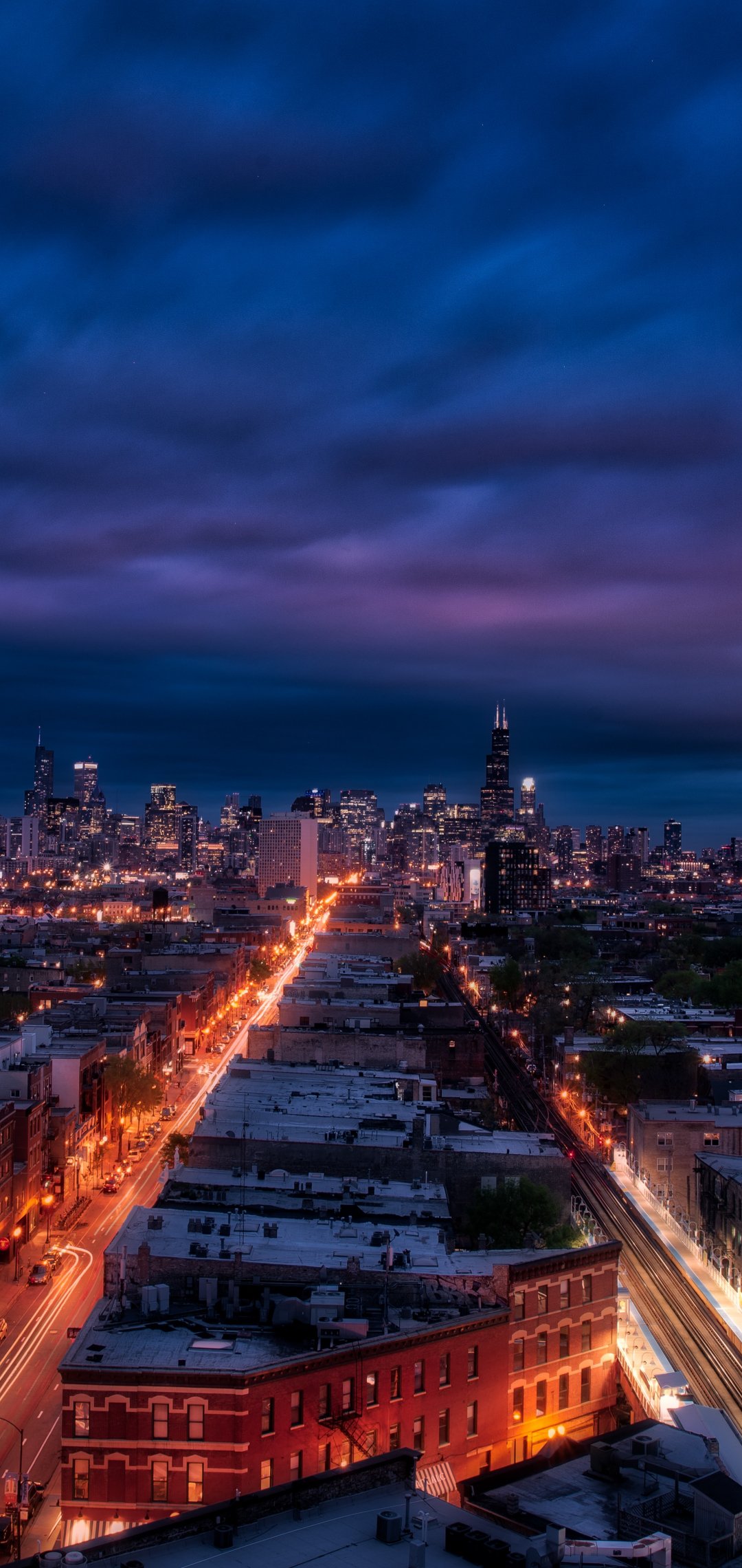 Wallpaper: Chicago, night city, metropolis - 1080x2280