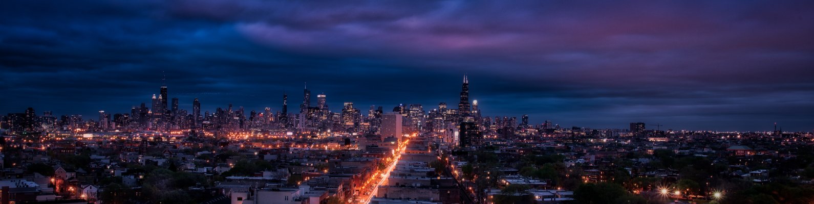 Wallpaper: Chicago, night city, metropolis - 1590x400