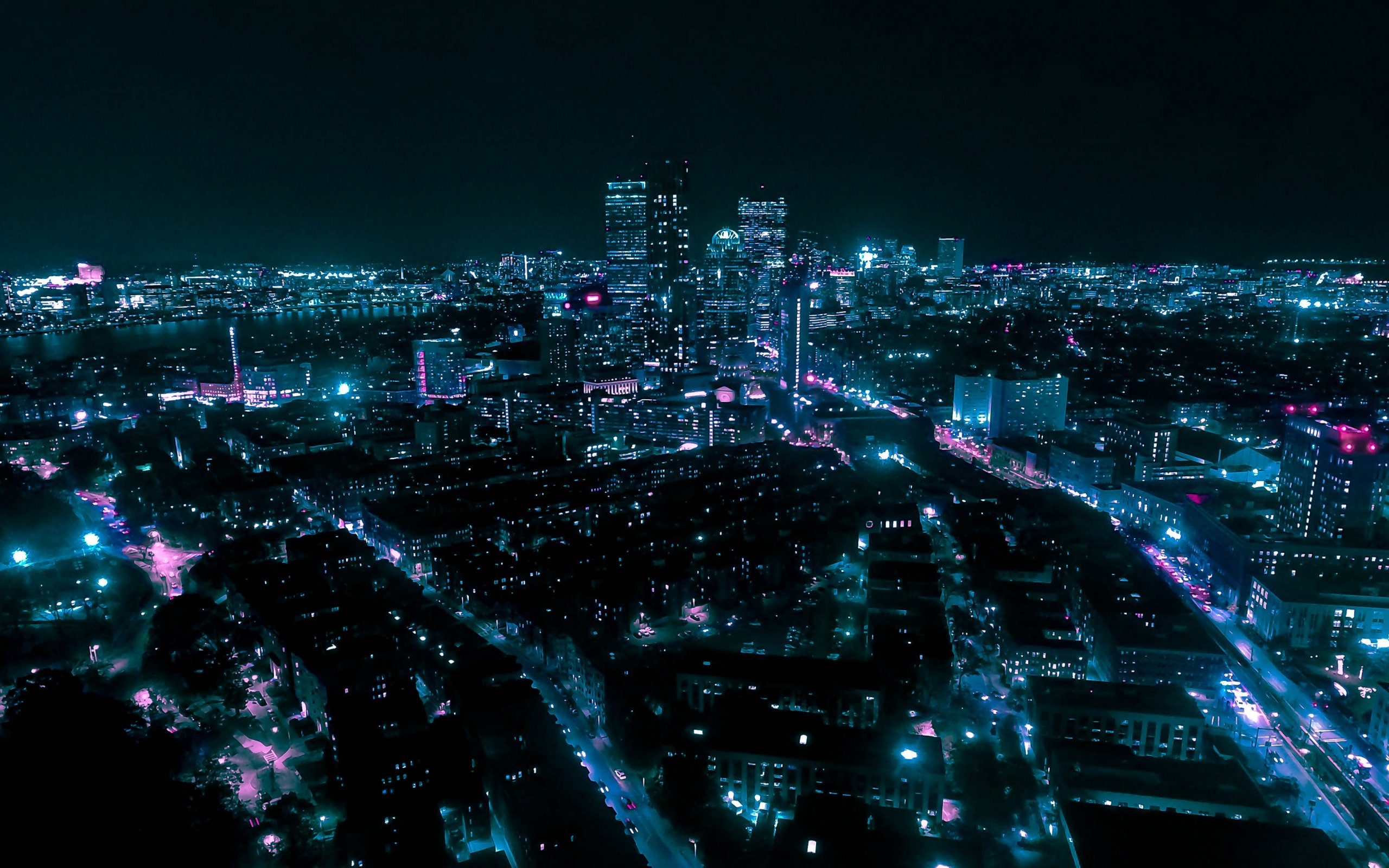 Wallpaper: Boston, bird's eye view, night city - 2560x1600