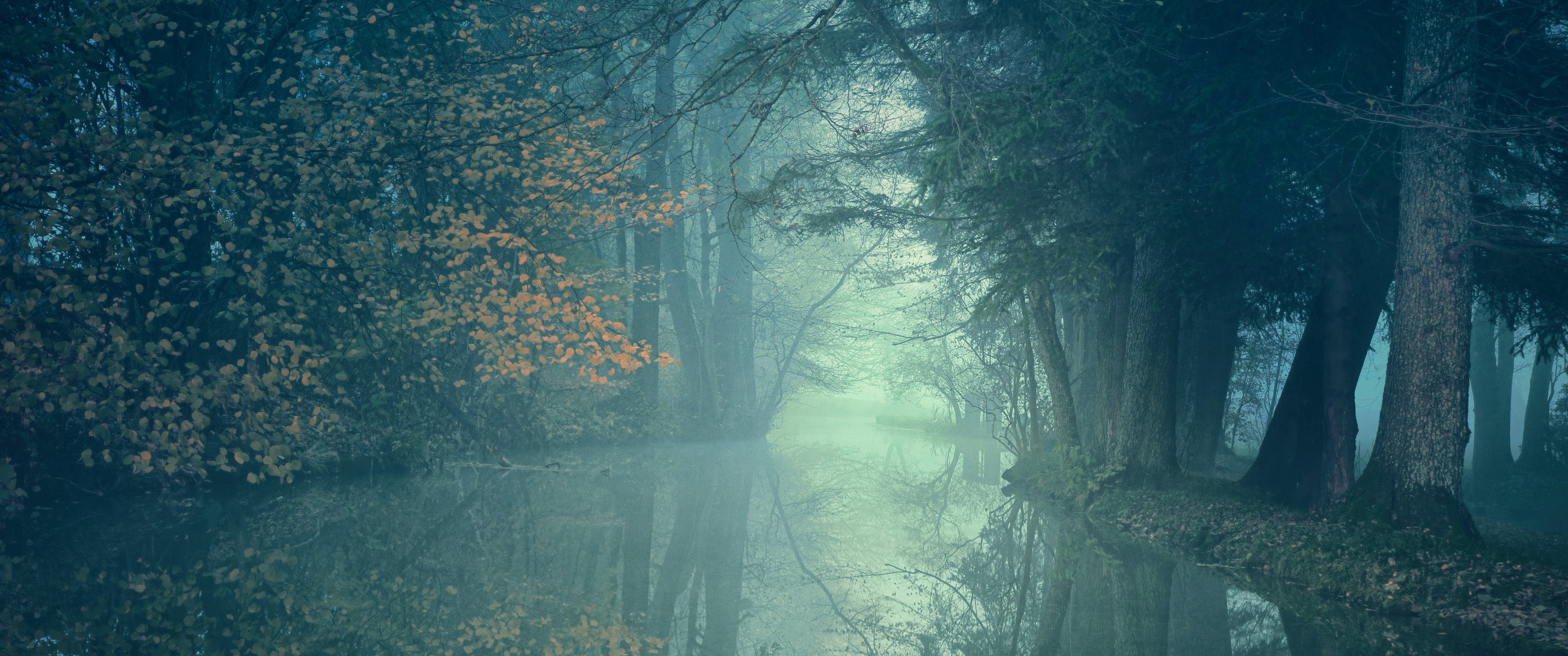 Wallpaper: landscape, forest, green - 3440x1440