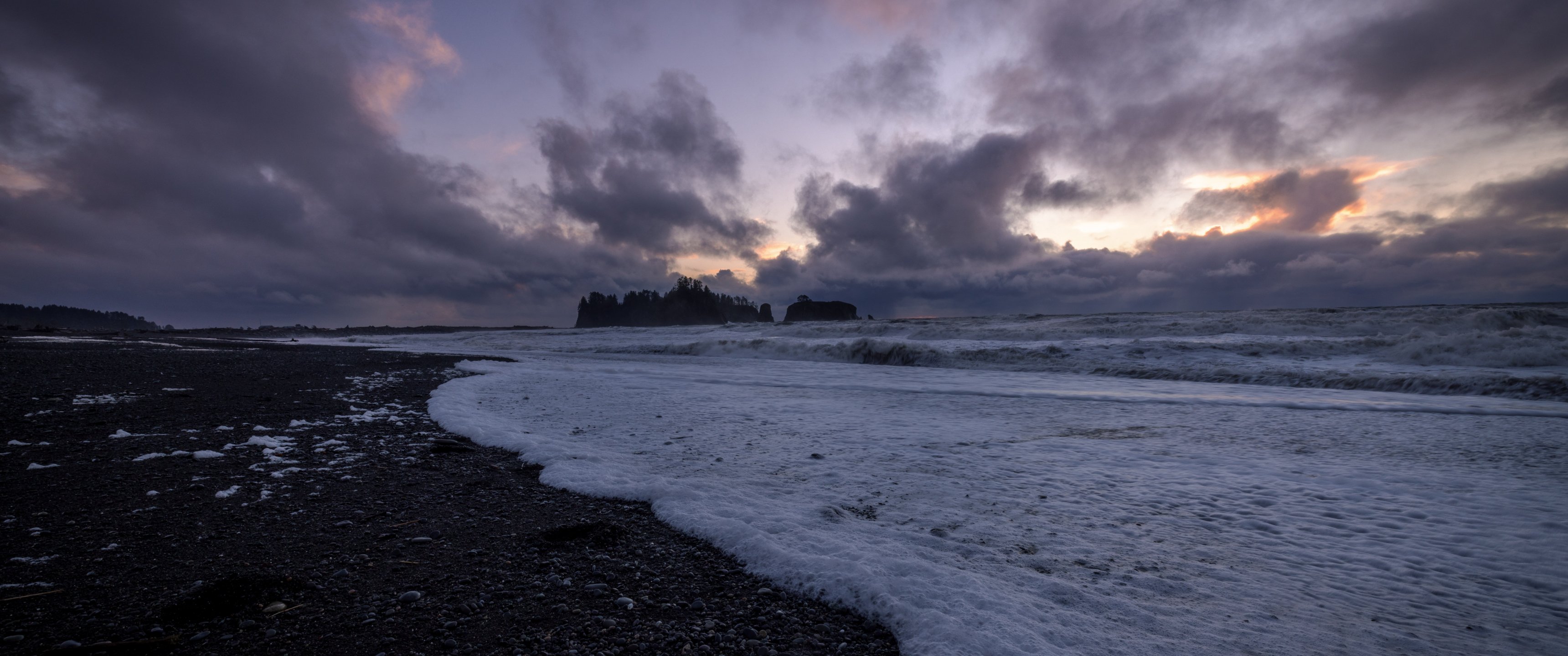 Wallpaper: sea waves, sea foam, shore - 3440x1440