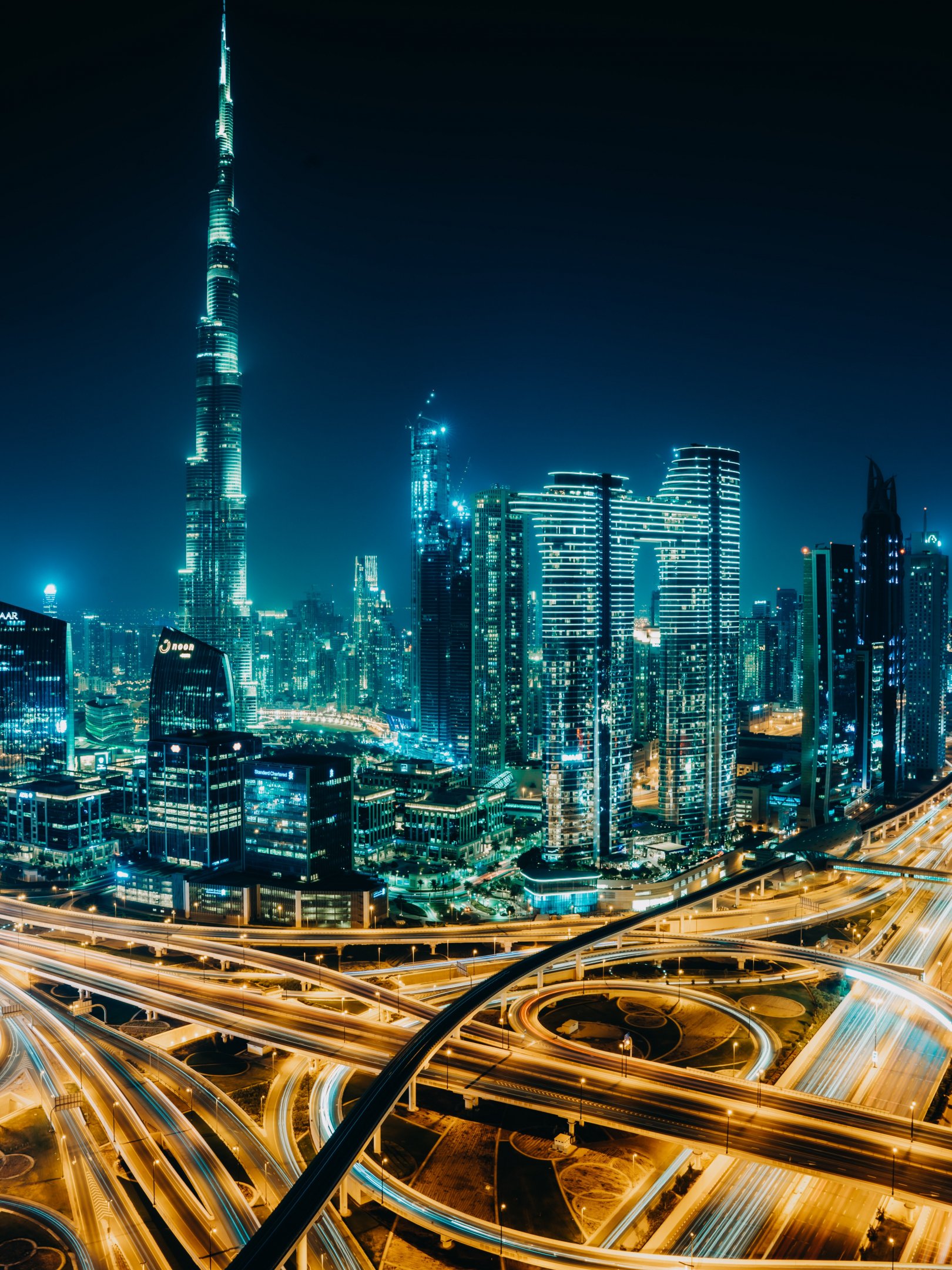 Wallpaper: Dubai, UAE, night city - 1620x2160