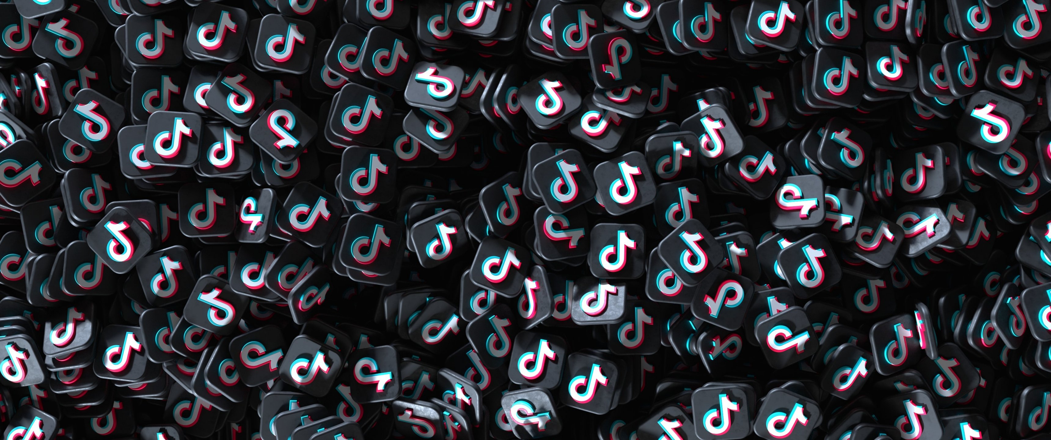 Wallpaper: TikTok, black, logo - 3440x1440