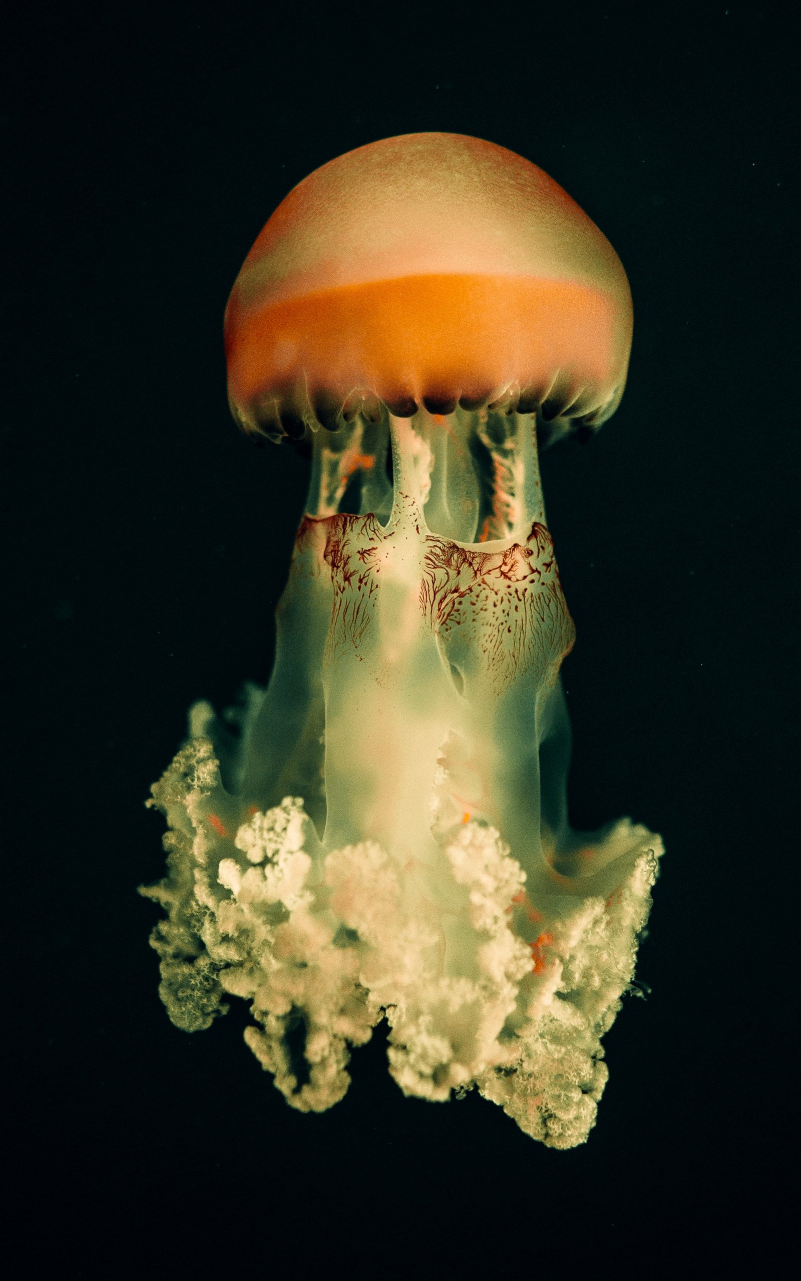 Wallpaper: jellyfish, underwater world, on black background - 1600x2560