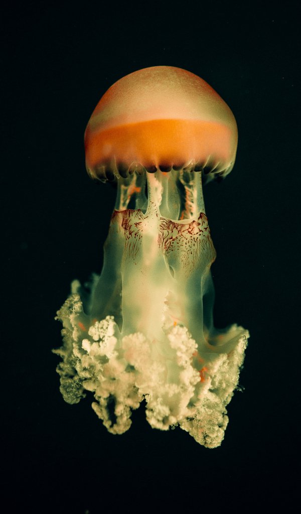 Wallpaper: jellyfish, underwater world, on black background - 600x1024