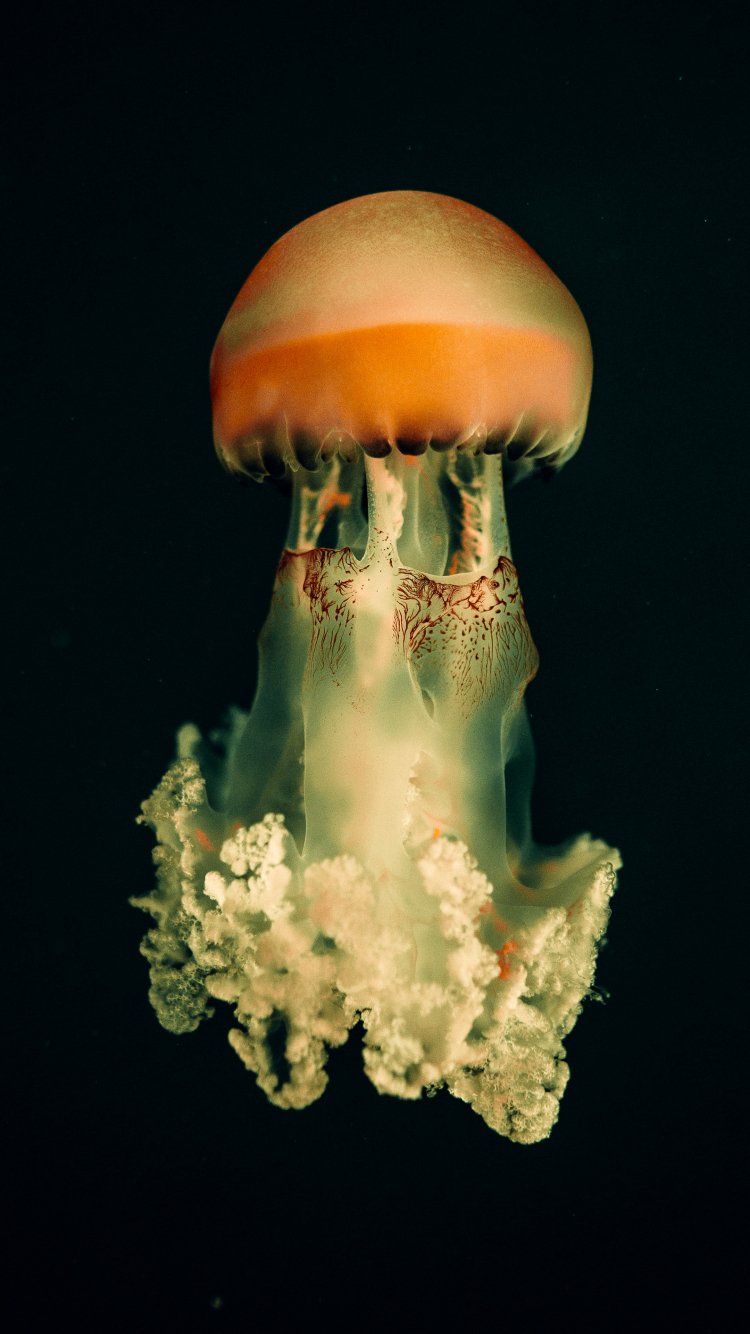 Wallpaper: jellyfish, underwater world, on black background - 750x1334