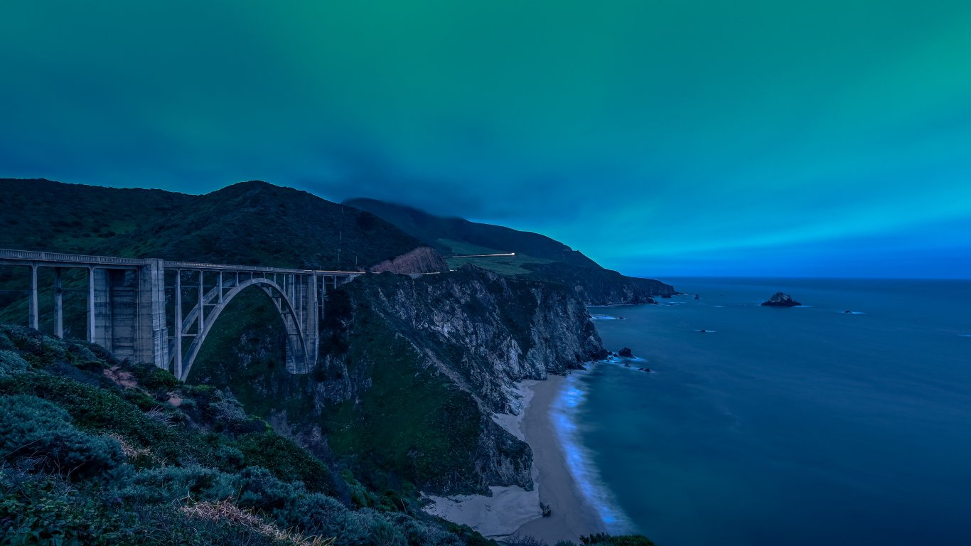 Wallpaper: Bixby Bridge, cliff, shore - 1366x768