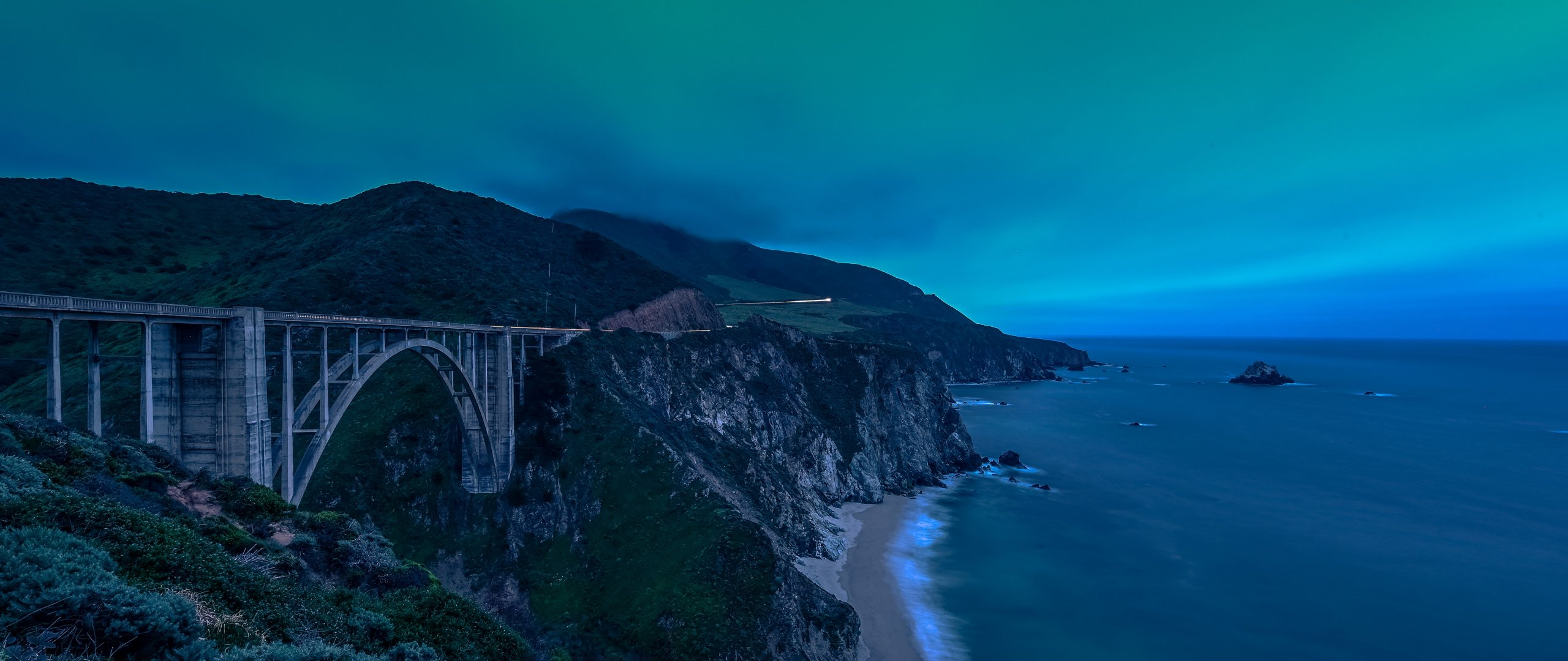 Wallpaper: Bixby Bridge, cliff, shore - 2560x1080